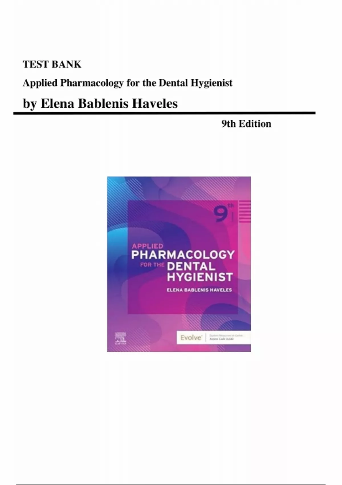Test Bank for Applied Pharmacology for the Dental Hygienist 9th Edition by Elena Bablenis Haveles, All Chapters