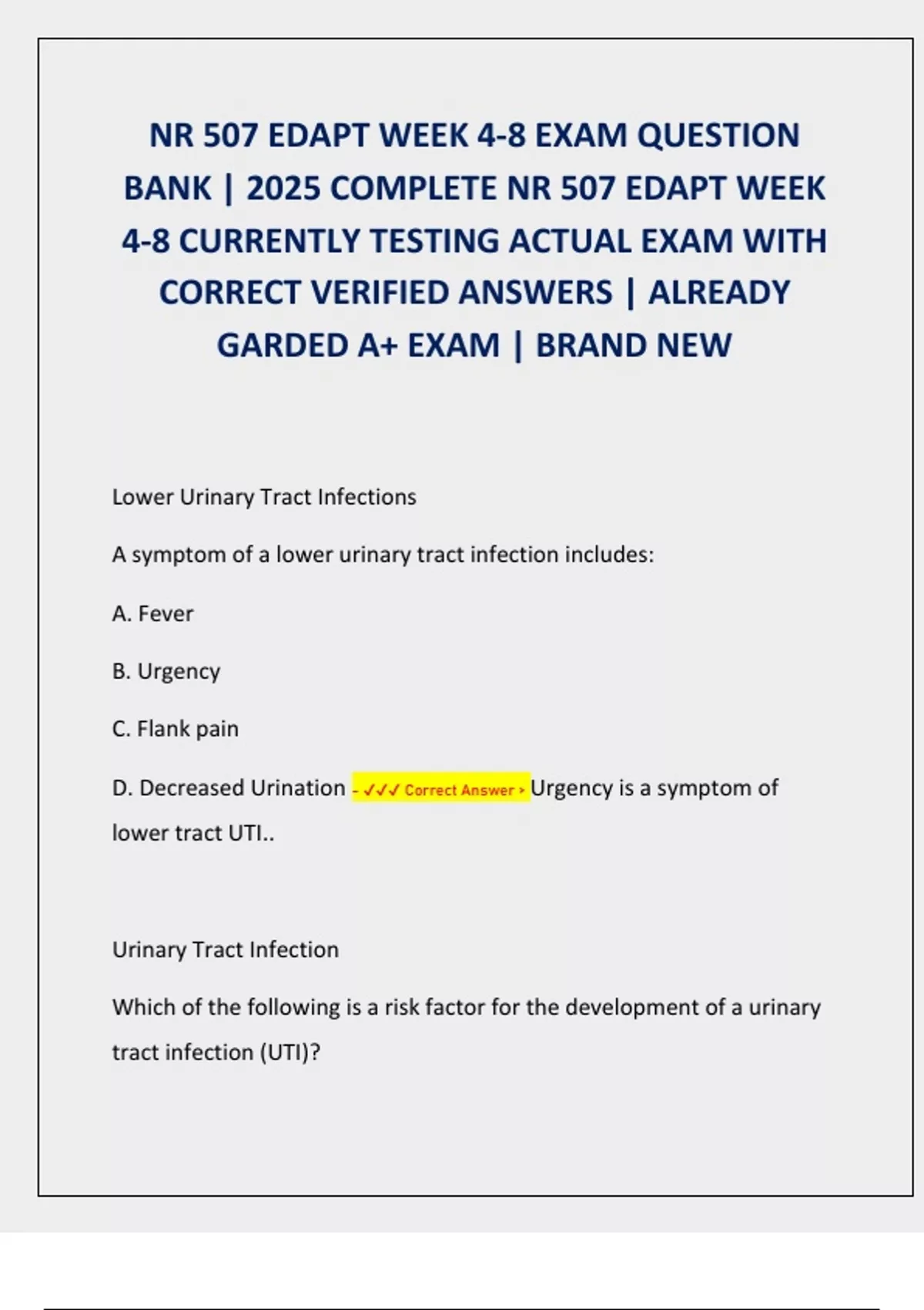 NR 507 EDAPT WEEK 4-8 EXAM QUESTION BANK | 2025 COMPLETE NR 507 EDAPT WEEK 4-8 CURRENTLY TESTING ACTUAL EXAM WITH CORRECT VERIFIED ANSWERS | ALREADY GARDED A+ EXAM | BRAND NEW