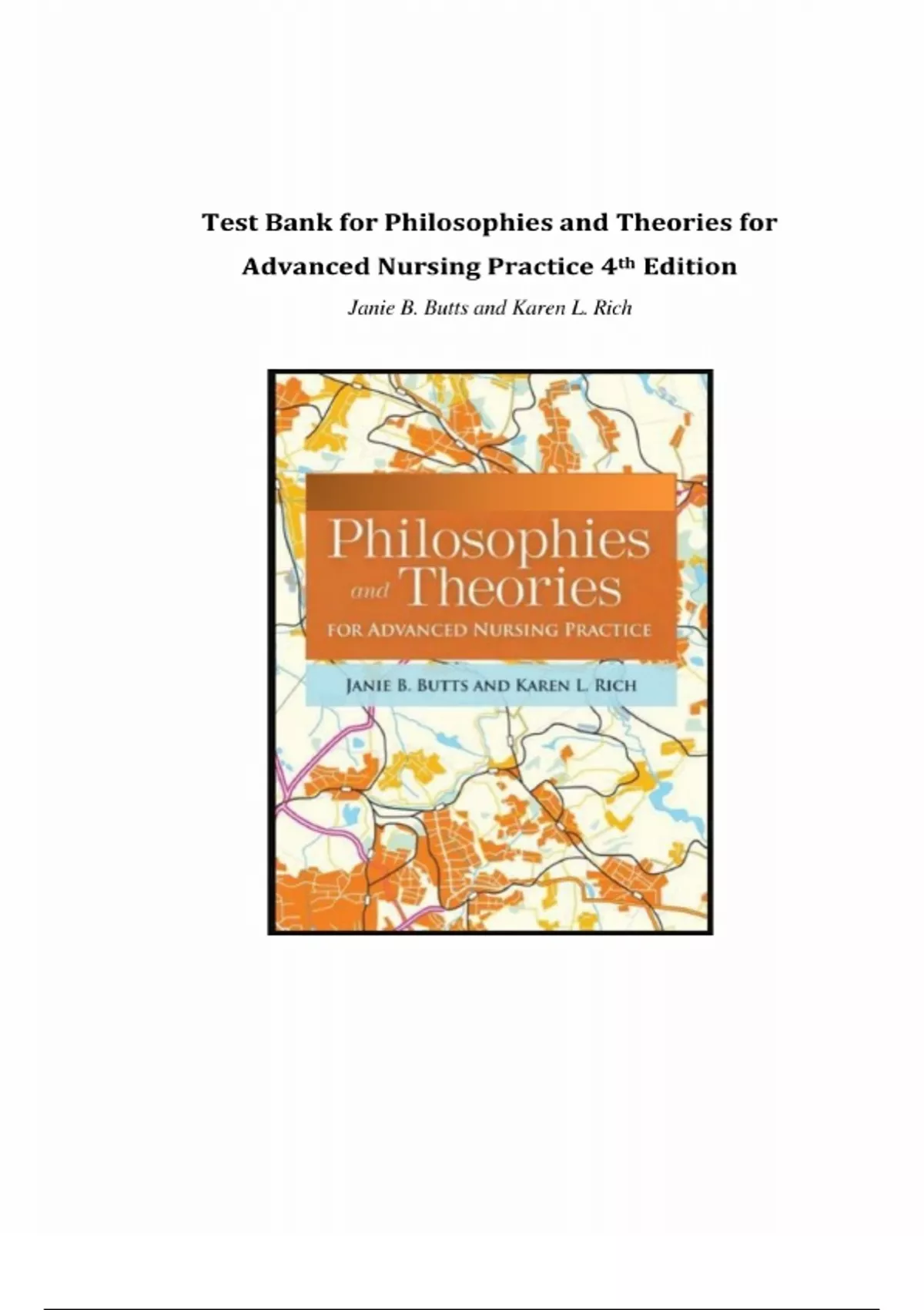 Test Bank For Philosophies and Theories for Advanced Nursing Practice 4th Edition by Janie B. Butts. Full Chapters Include;....Section I Foundations of Nursing Science Chapter 1 Philosophy of Science: An Introduction and a Grounding for Your Practice Chapter 2 The Evolution of Nursing Science Chapter 3 The Essentials of the Doctor of Nursing Practice: A Philosophical Perspective Section II The Structure and Function of Theory Chapter 4 Theory as Practice Chapter 5 Components and Levels of Abstraction in Nursing Knowledge Section III Interdisciplinary Philosophies and Theories Chapter 6 Complexity Science and Complex Adaptive Systems Chapter 7 Critical Theory and Emancipatory Knowing Chapter 8 Feminist Ethics: Some Thoughts About