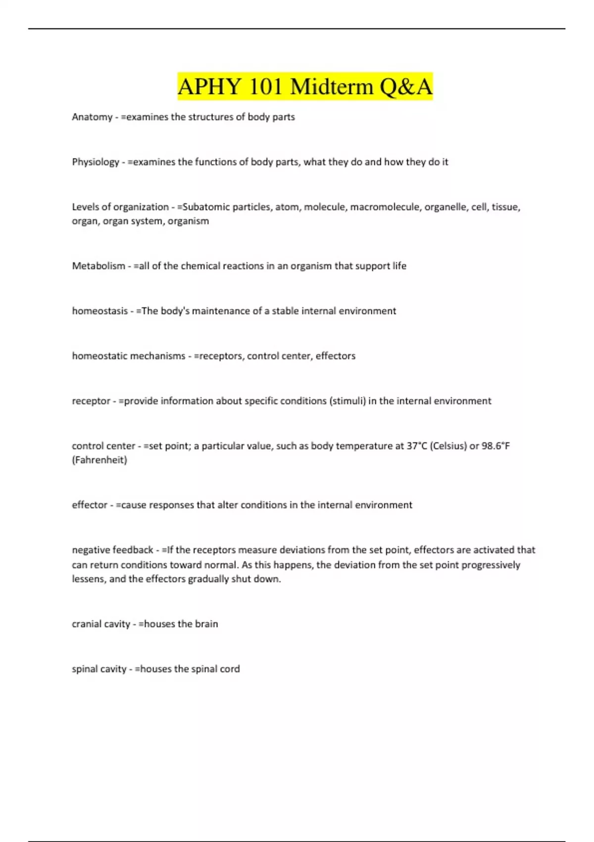 APHY 101 Midterm Q&A