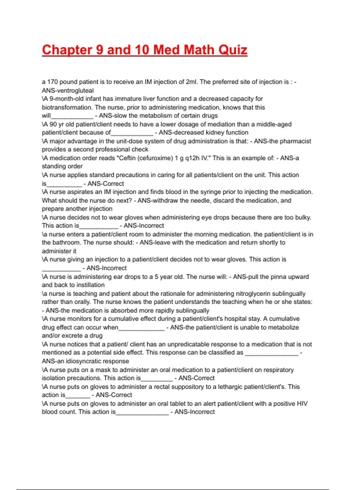 Chapter 9 and 10 Med Math Quiz 2025/2026 Questions With Completed & verified Solutions.