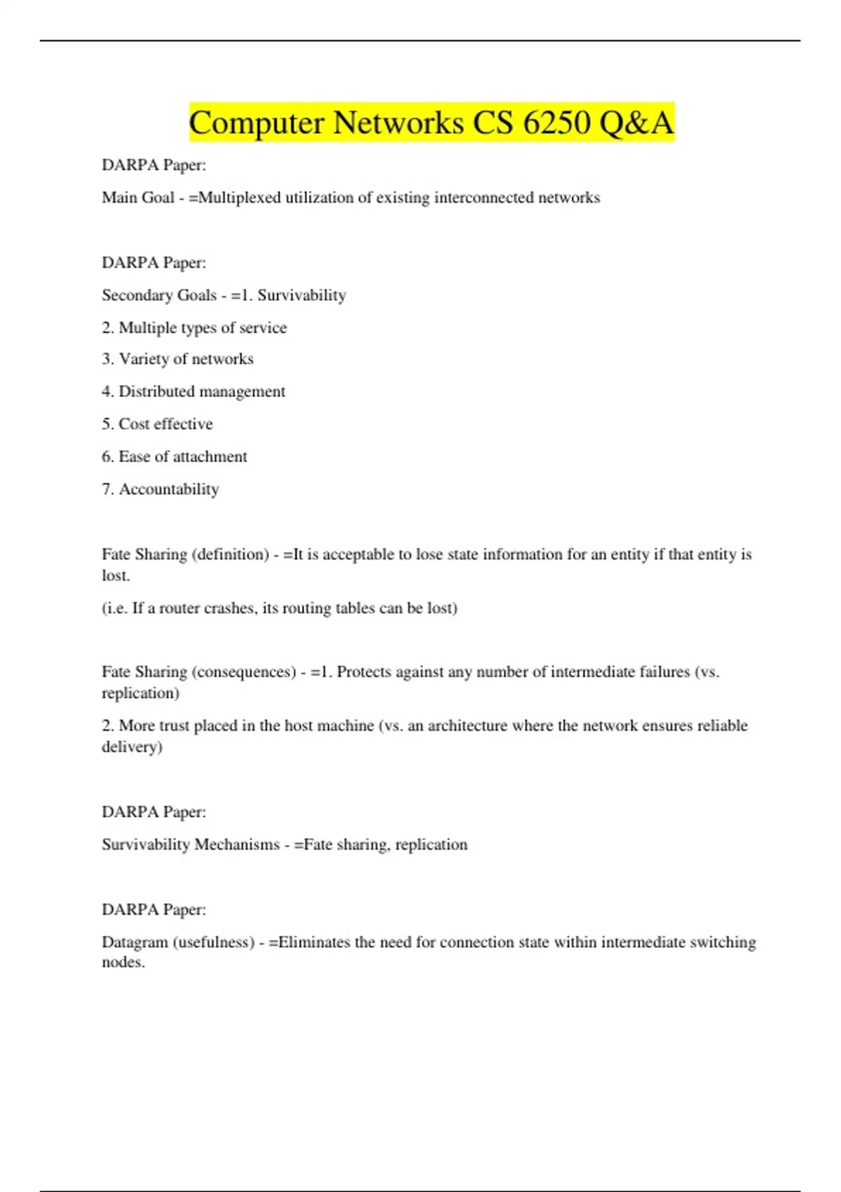 Computer Networks CS 6250 Q&A