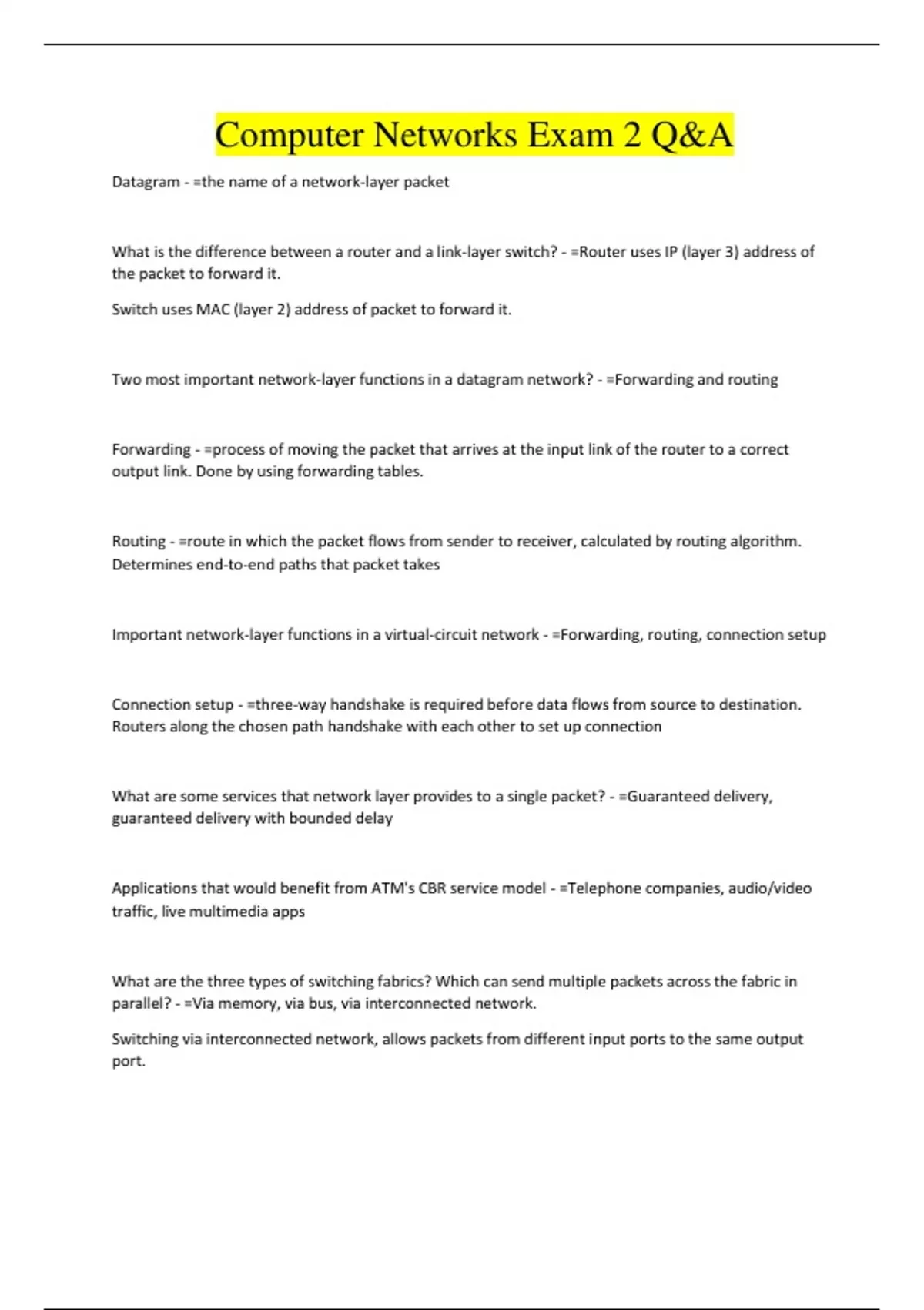 Computer Networks Exam 2 Q&A