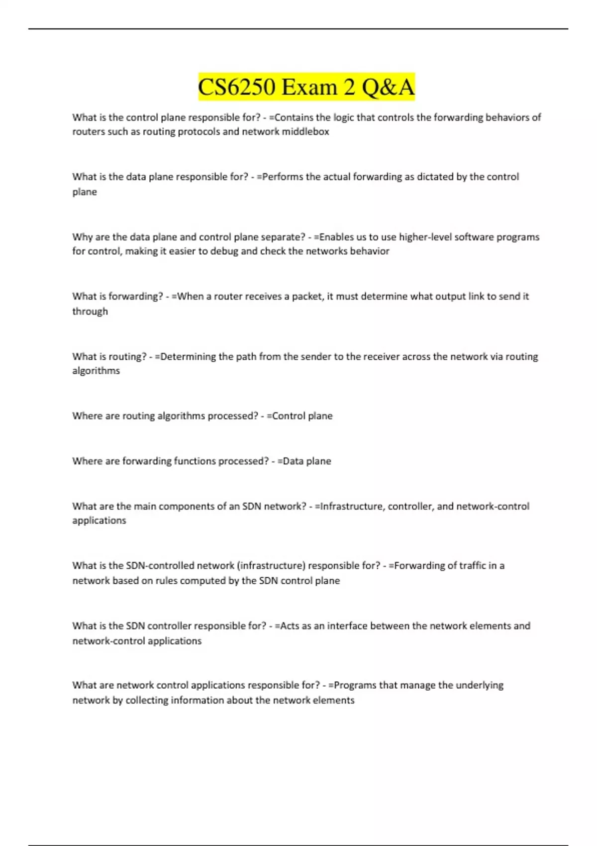 CS6250 Exam 2 Q&A