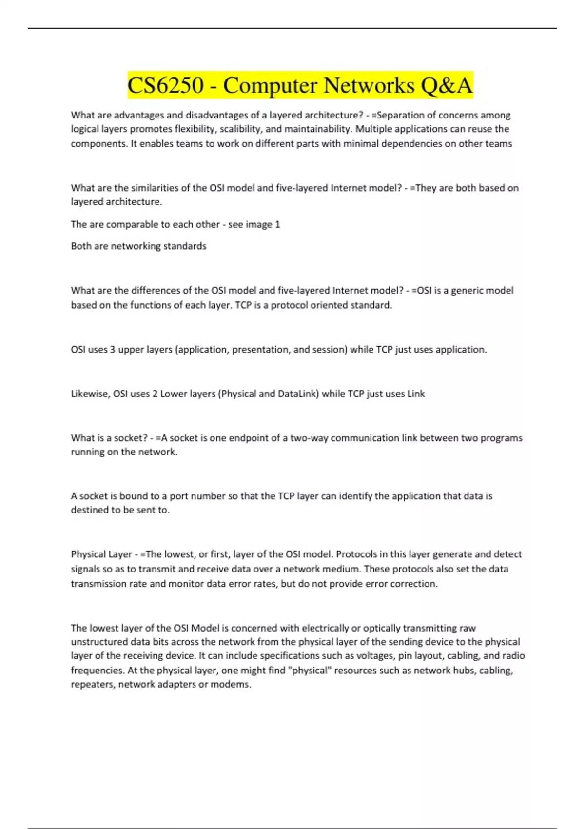 CS6250 - Computer Networks Q&A