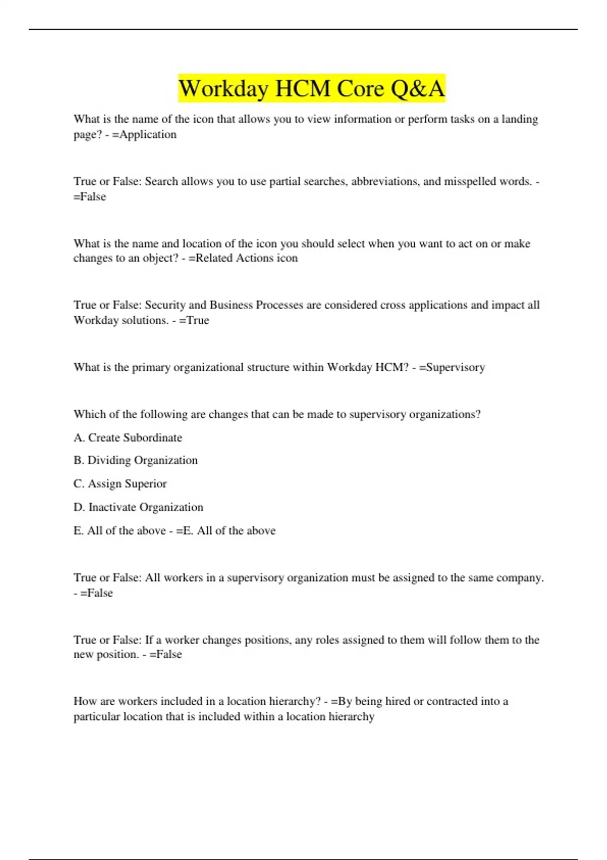 Workday HCM Core Q&A