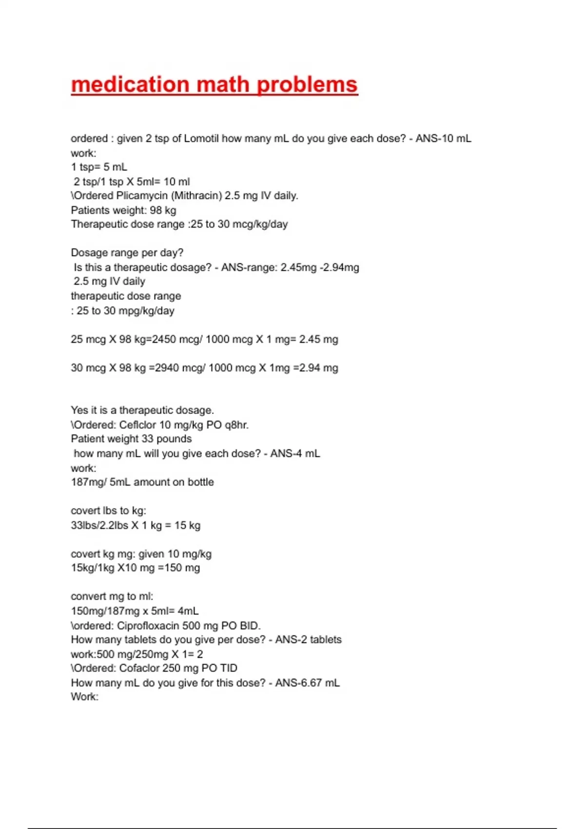 ordered : given 2 tsp of Lomotil how many mL do you give each dose? - ANS-10 mL