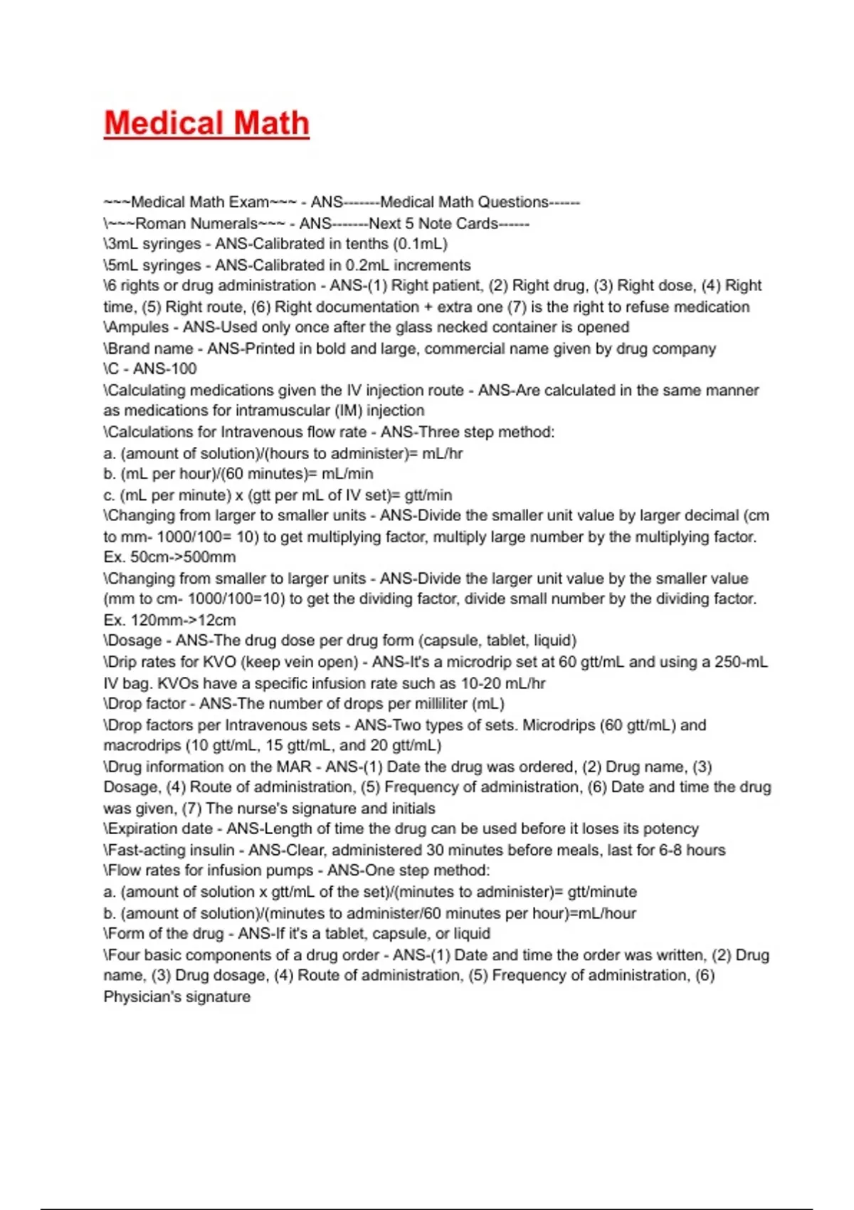 ~~~Medical Math Exam~~~ - ANS-------Medical Math Questions------