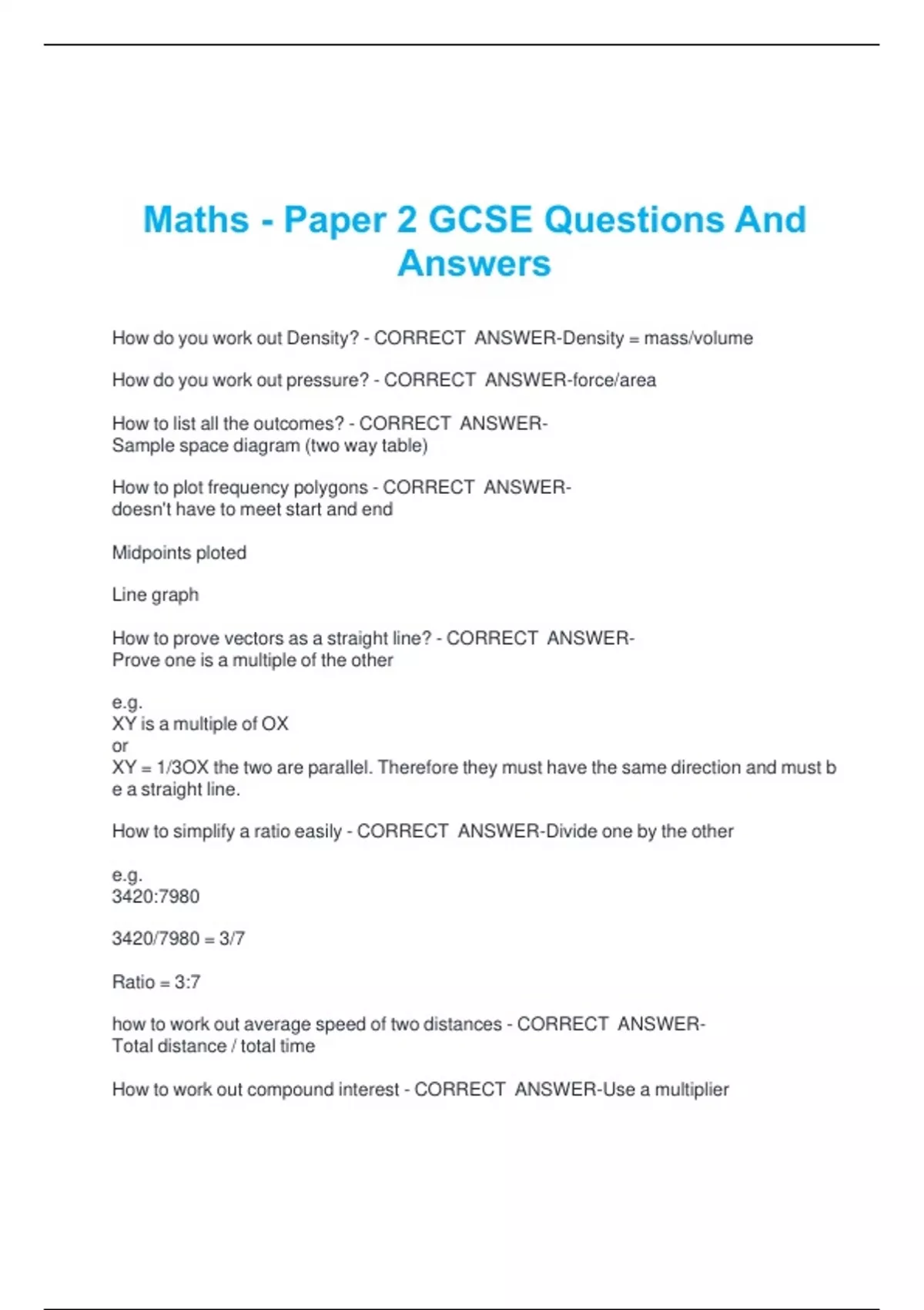 Maths - Paper 2 GCSE Questions And