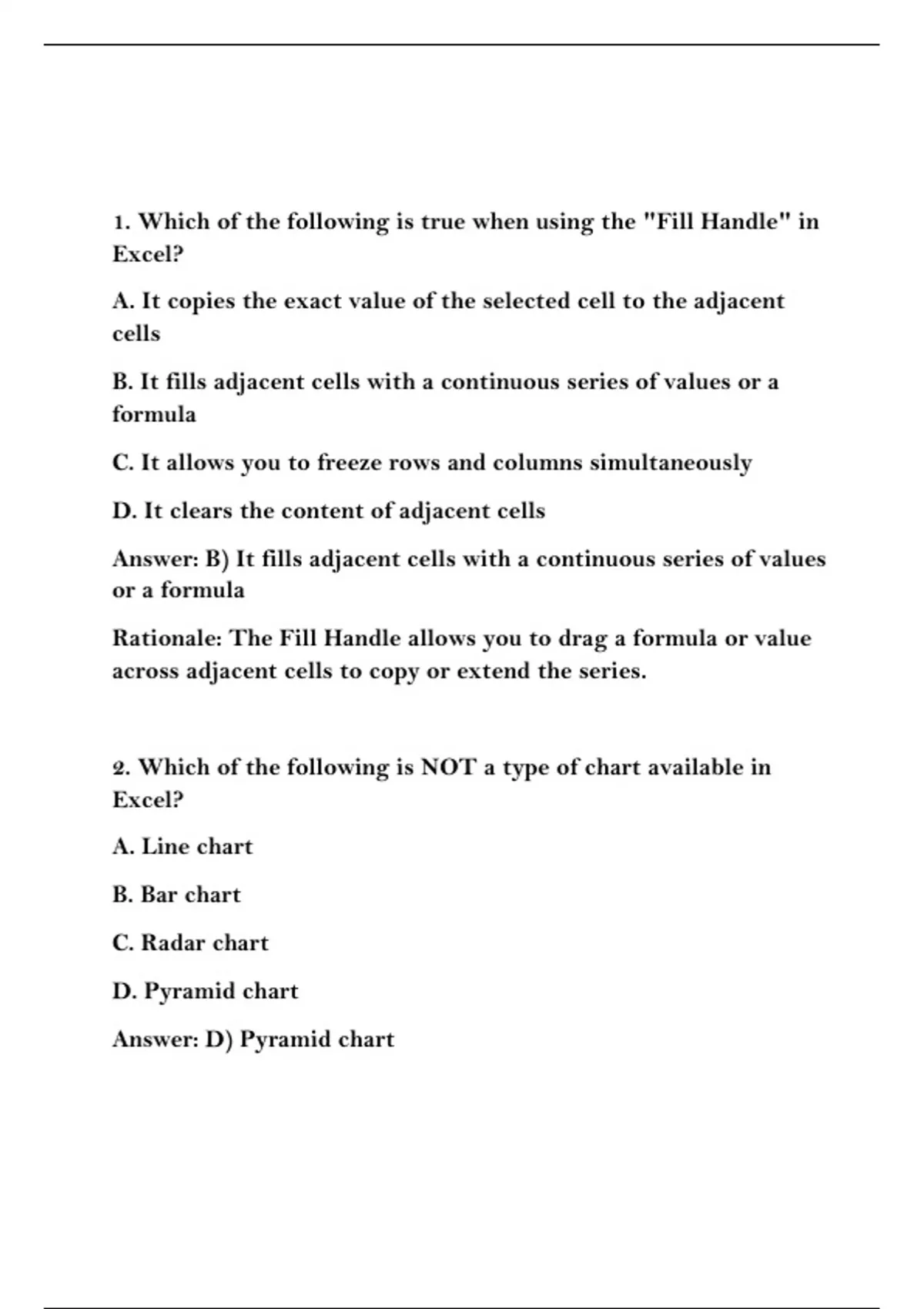 1. Which of the following is true when using the "Fill Handle" in