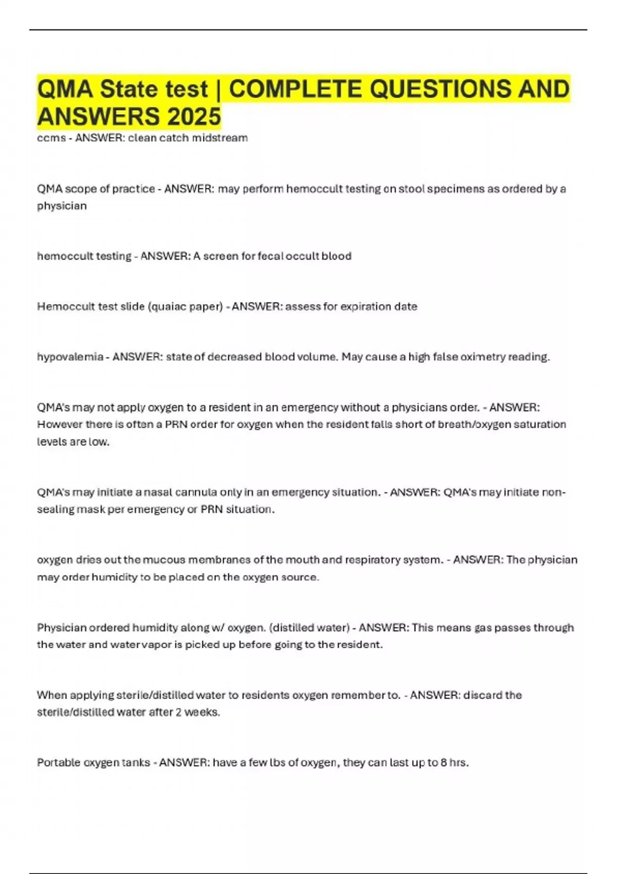 QMA State test | COMPLETE QUESTIONS AND ANSWERS 2025