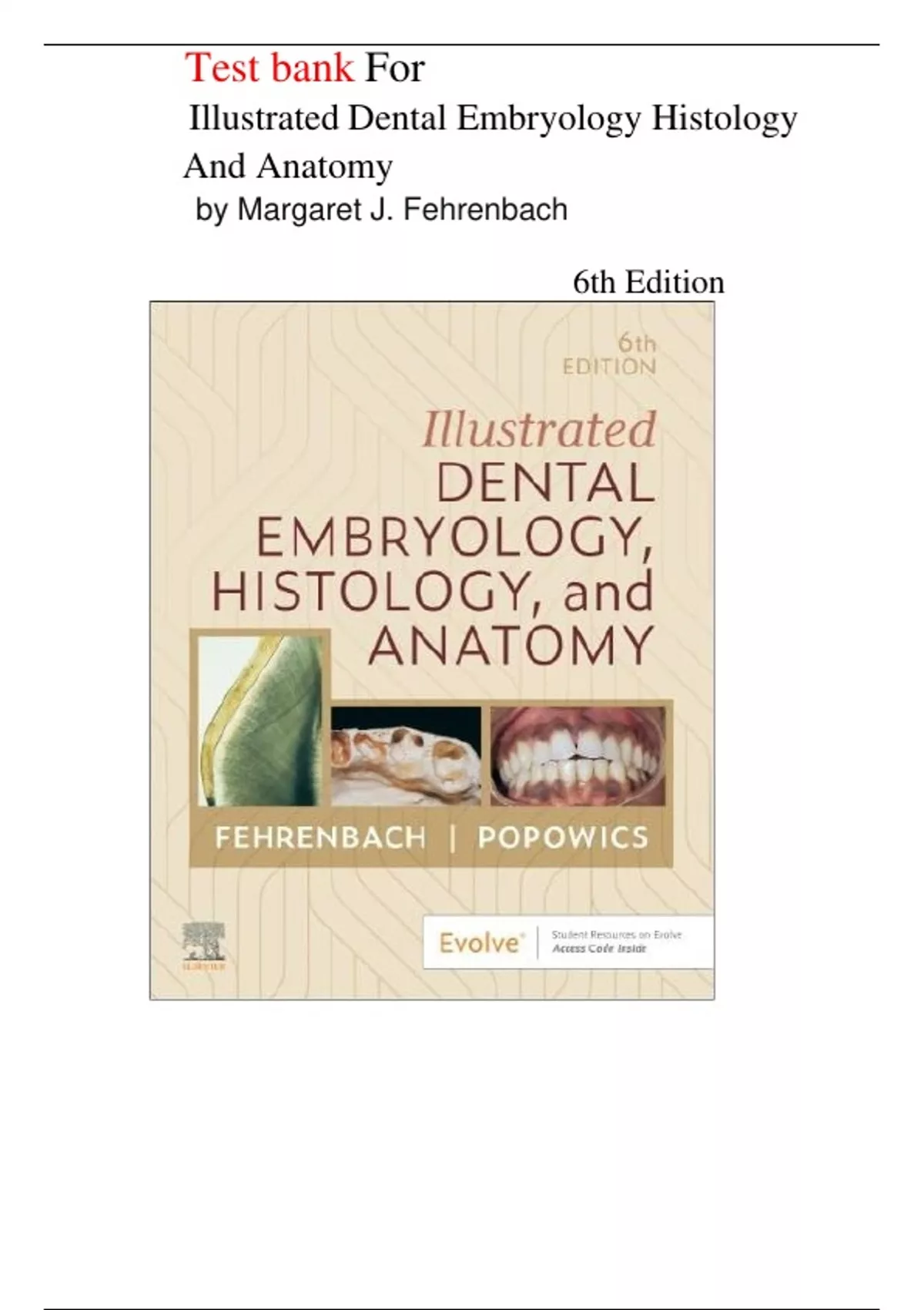Test Bank For Illustrated Dental Embryology, Histology, and Anatomy 6th Edition ( Authors : Margaret J. Fehrenbach & Tracy Popowics) All Chapters | Latest Edition 2025