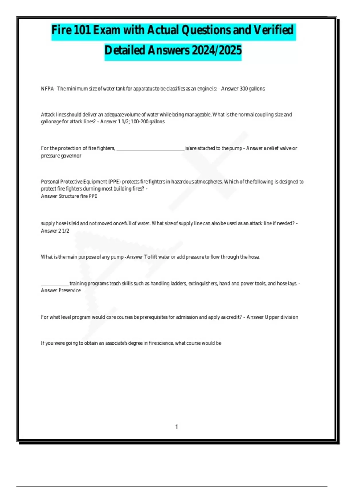 Fire 101 Exam with Actual Questions and Verified Detailed Answers 2024/2025