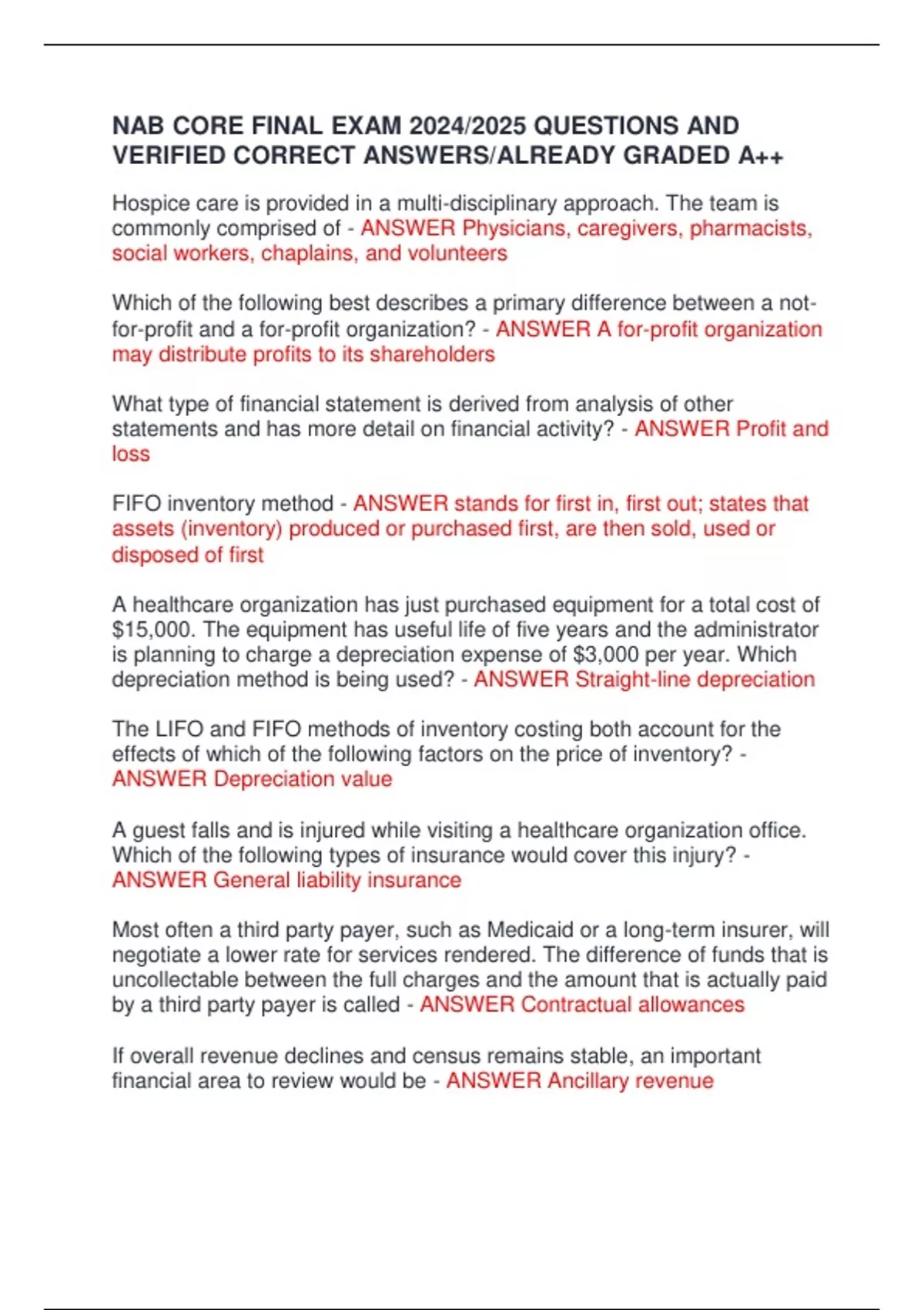 NAB CORE FINAL EXAM 2024/2025 QUESTIONS AND VERIFIED CORRECT ANSWERS/ALREADY GRADED A++ NAB CORE FINAL EXAM 2024/2025 QUESTIONS AND VERIFIED CORRECT ANSWERS/ALREADY GRADED A++
