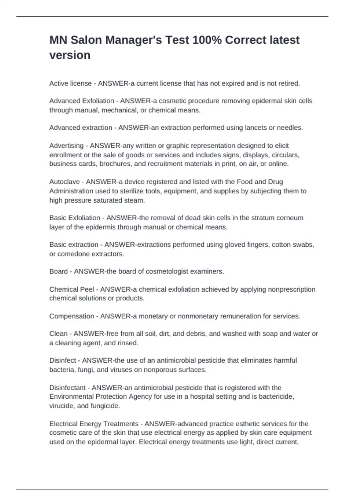 MN Salon Manager's Test 100% Correct latest version
