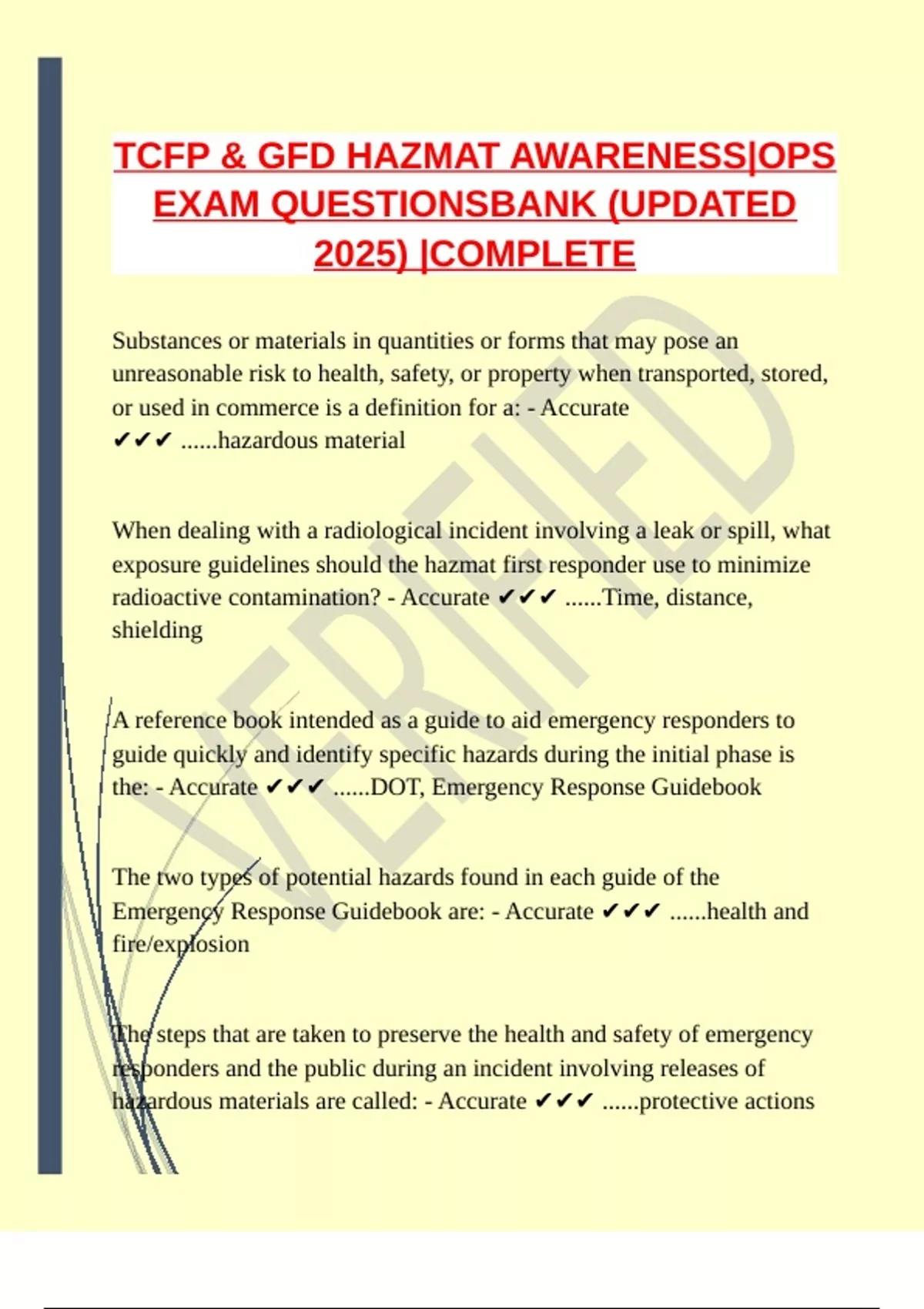 Emergency Response Guidebook are: - Accurate ✔✔✔ ......health and