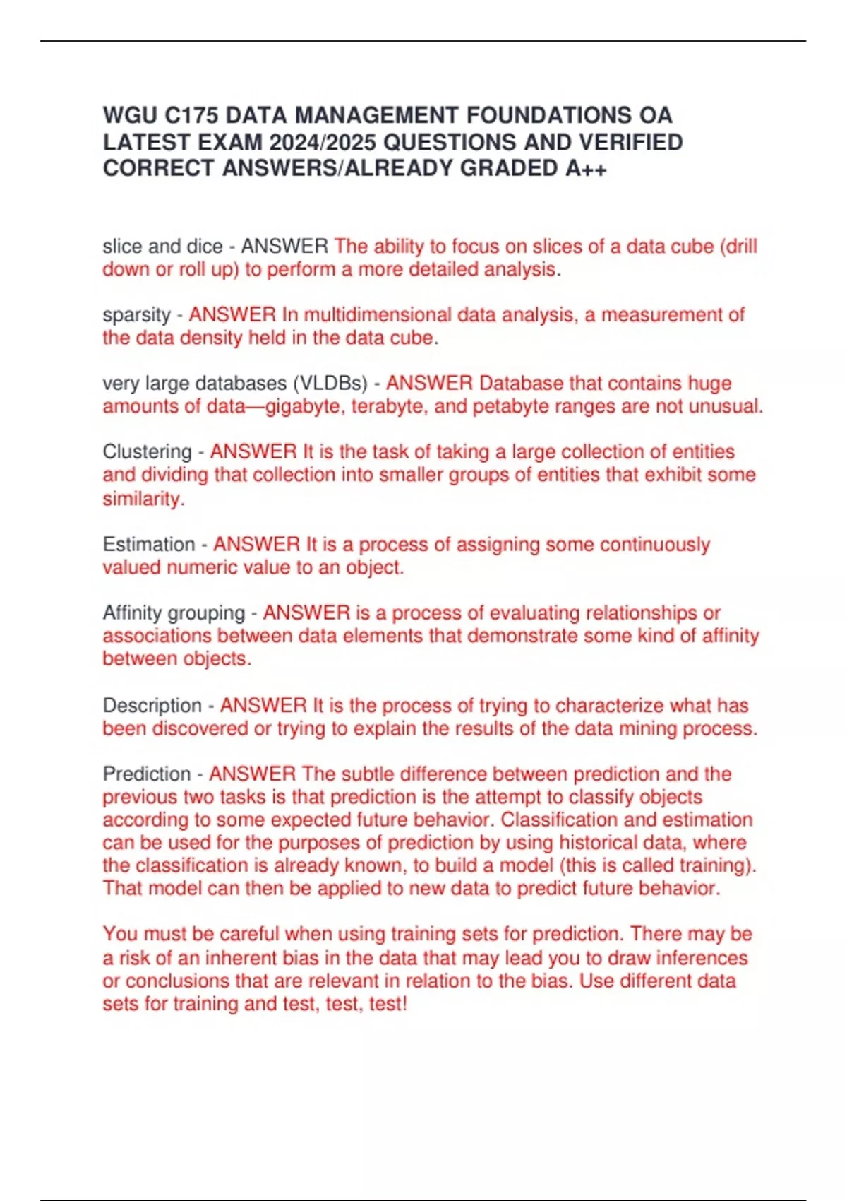 WGU C175 DATA MANAGEMENT FOUNDATIONS OA FINAL EXAM 2024/2025 QUESTIONS AND VERIFIED CORRECT ANSWERS/ ALREADY GRADED A++ WGU C175 DATA MANAGEMENT FOUNDATIONS OA FINAL EXAM 2024/2025 QUESTIONS AND VERIFIED CORRECT ANSWERS/ ALREADY GRADED A++