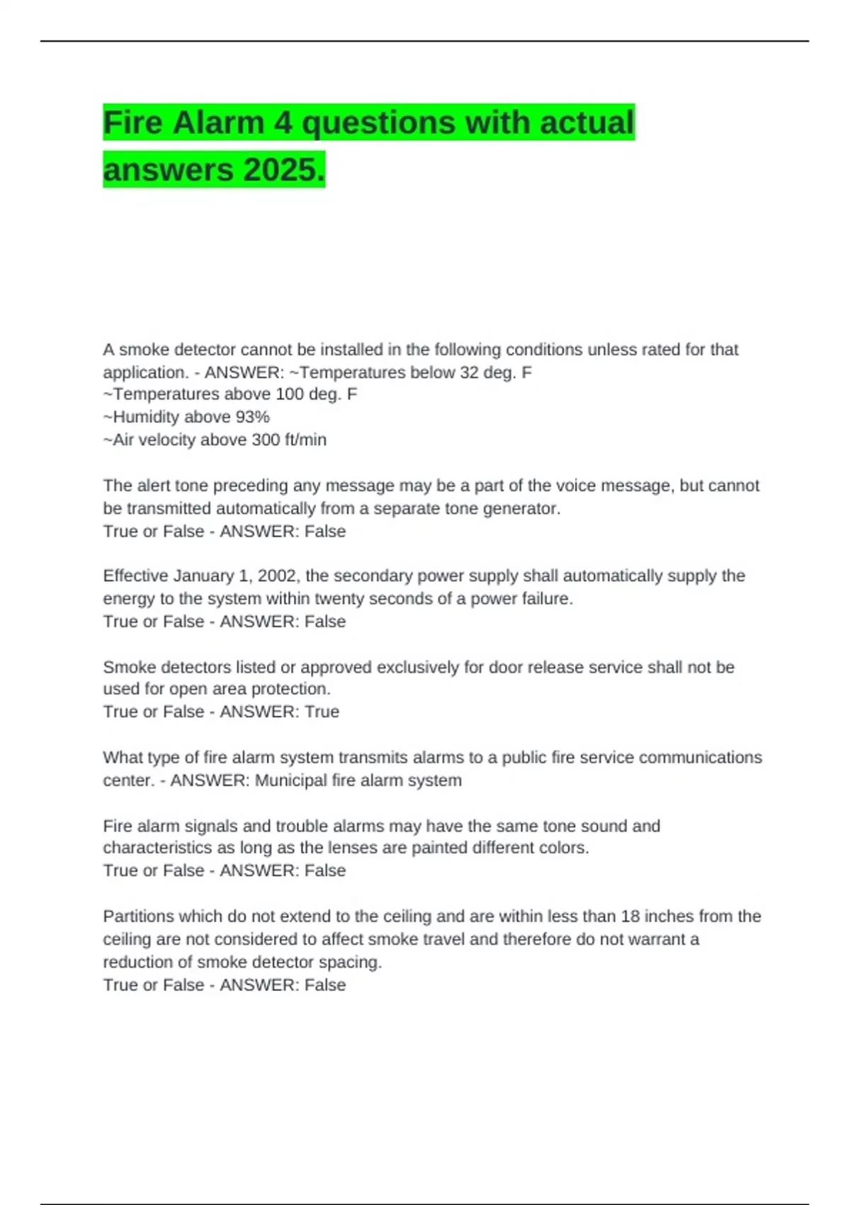 Fire Alarm 4 questions with actual