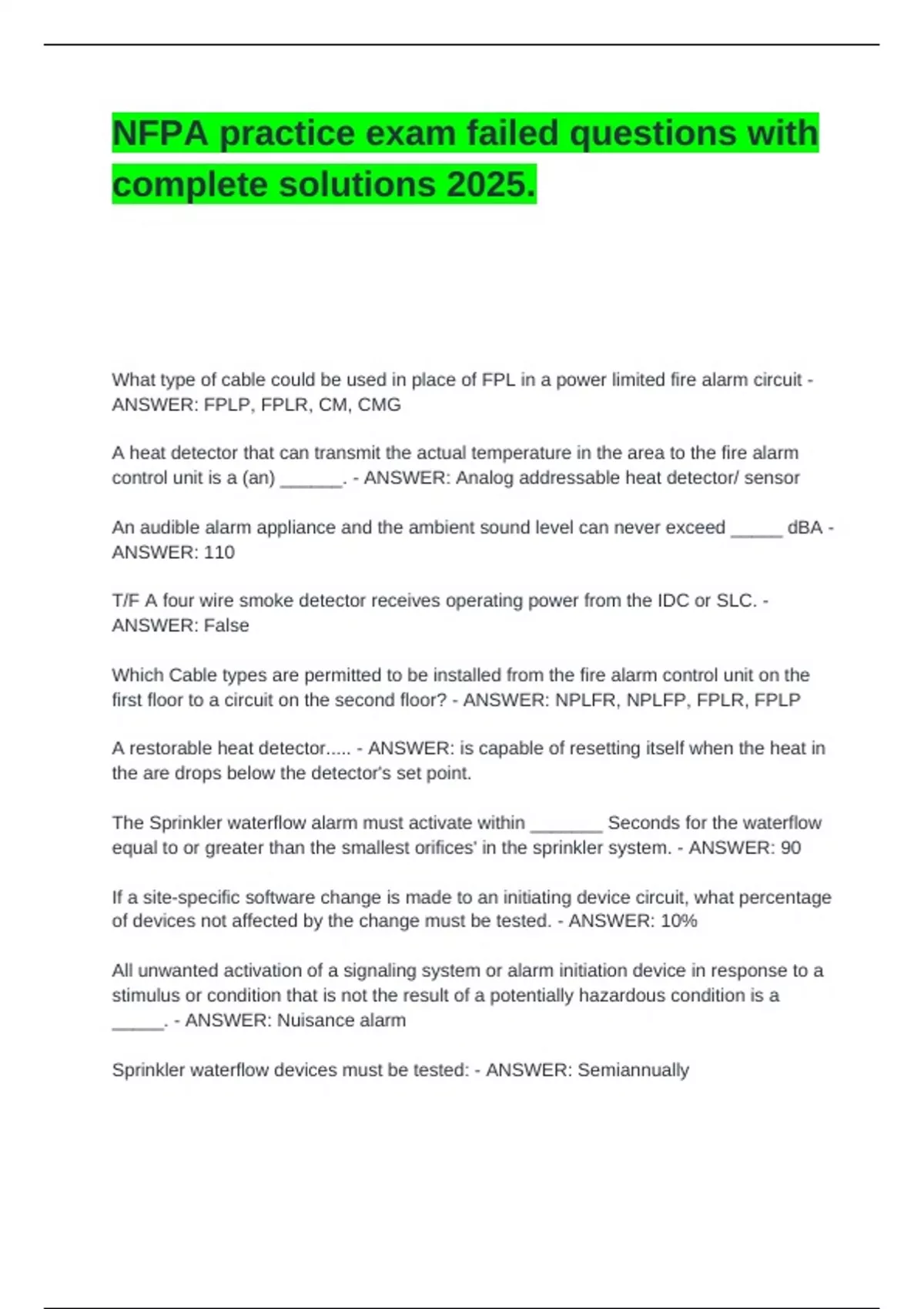 NFPA practice exam failed questions with complete solutions 2025.