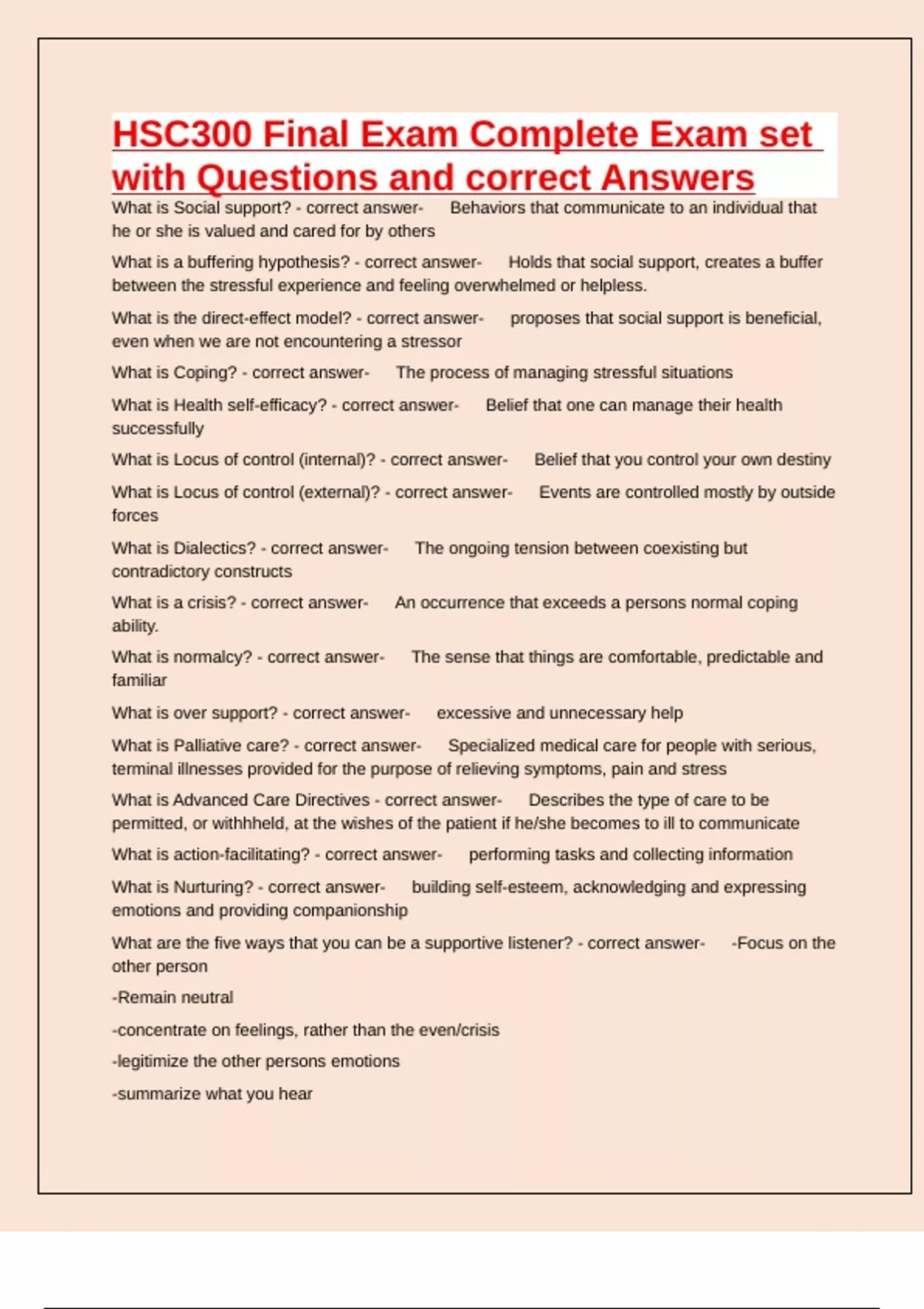 HSC300 Final Exam Complete Exam set