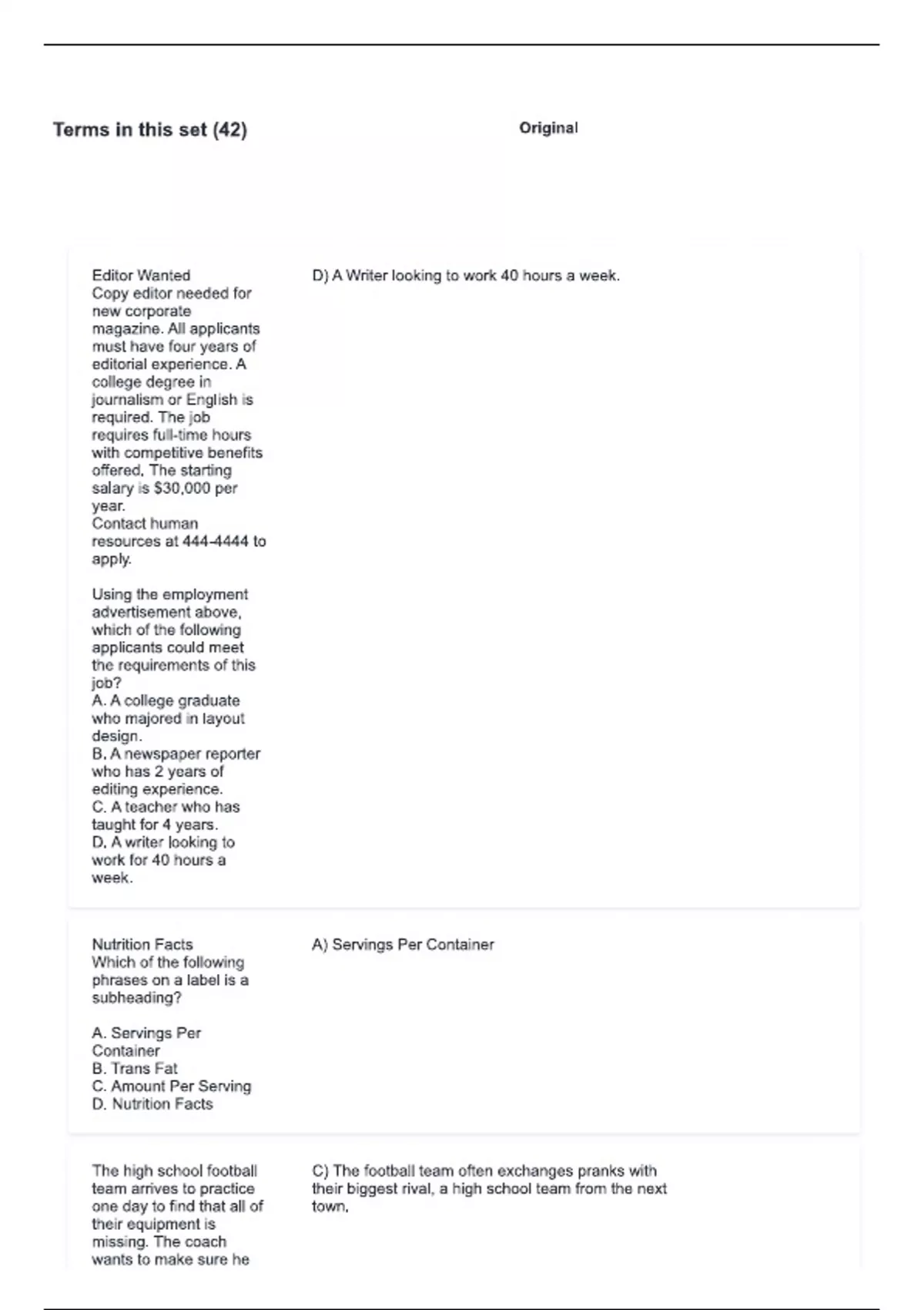 TEAS 7 Practice Exam Reading Questions & answers