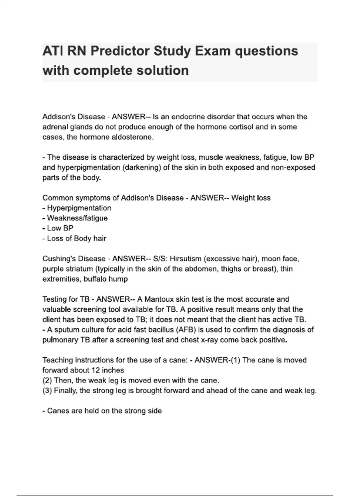 ATI RN Predictor Study Exam questions with complete solution