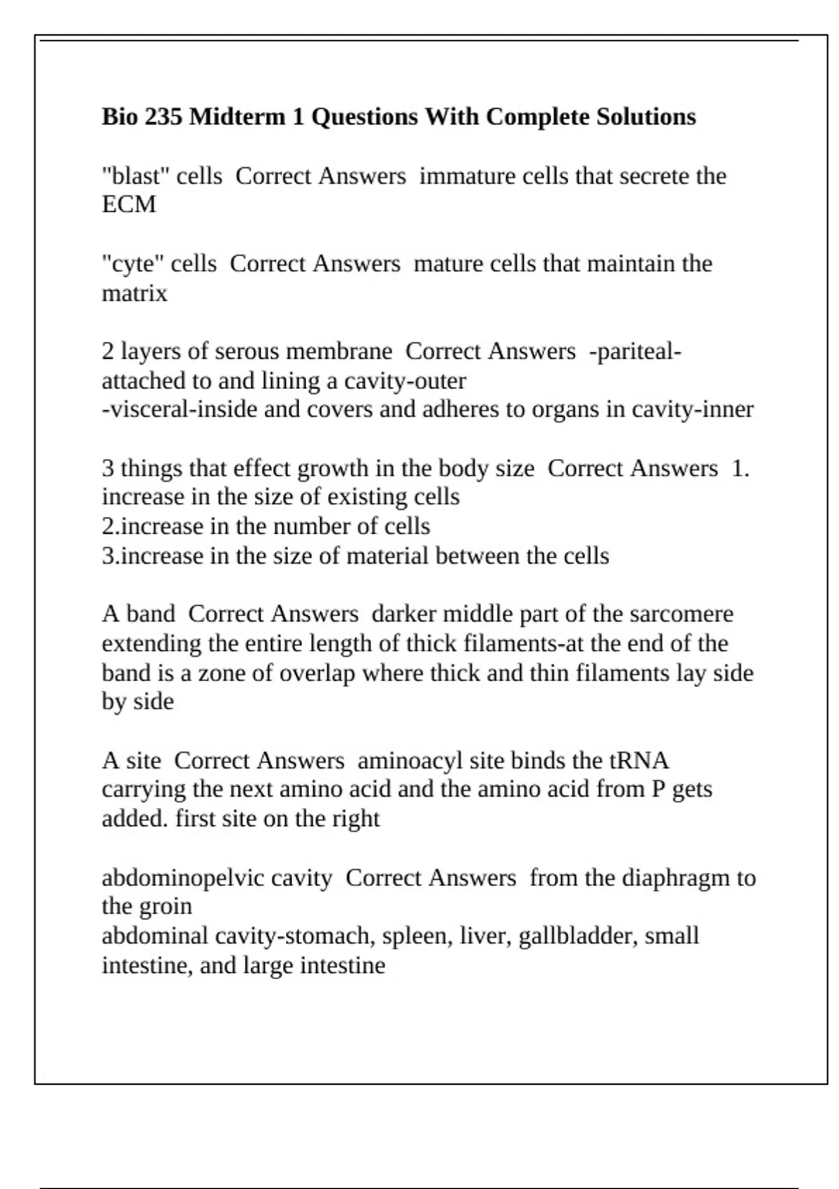 Bio 235 Midterm 1 Questions With Complete Solutions