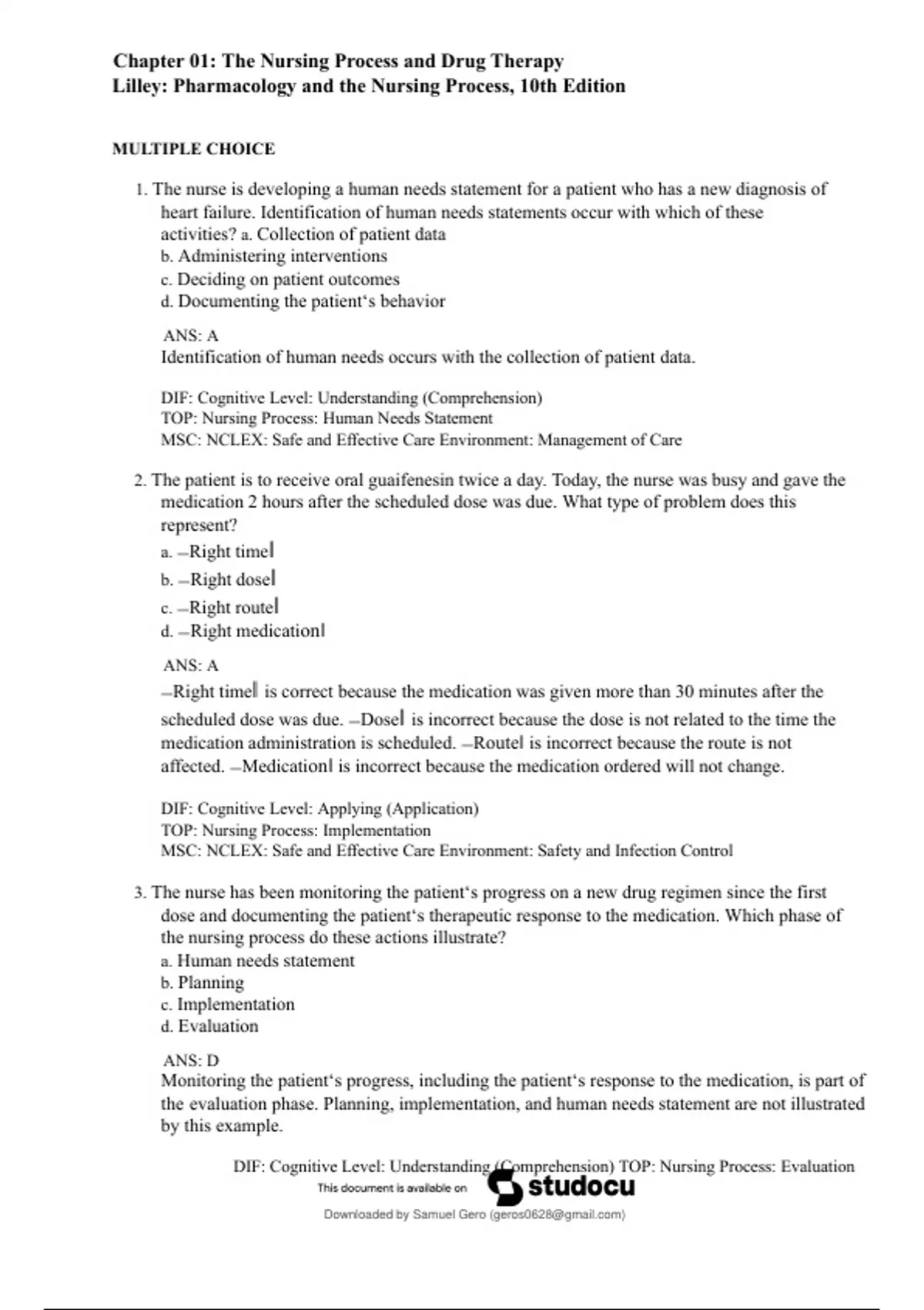 TestBank_Ally Inrap_Pharmacology_Nursing_Process_10th_2025.pdf, Exams of Pharmacology