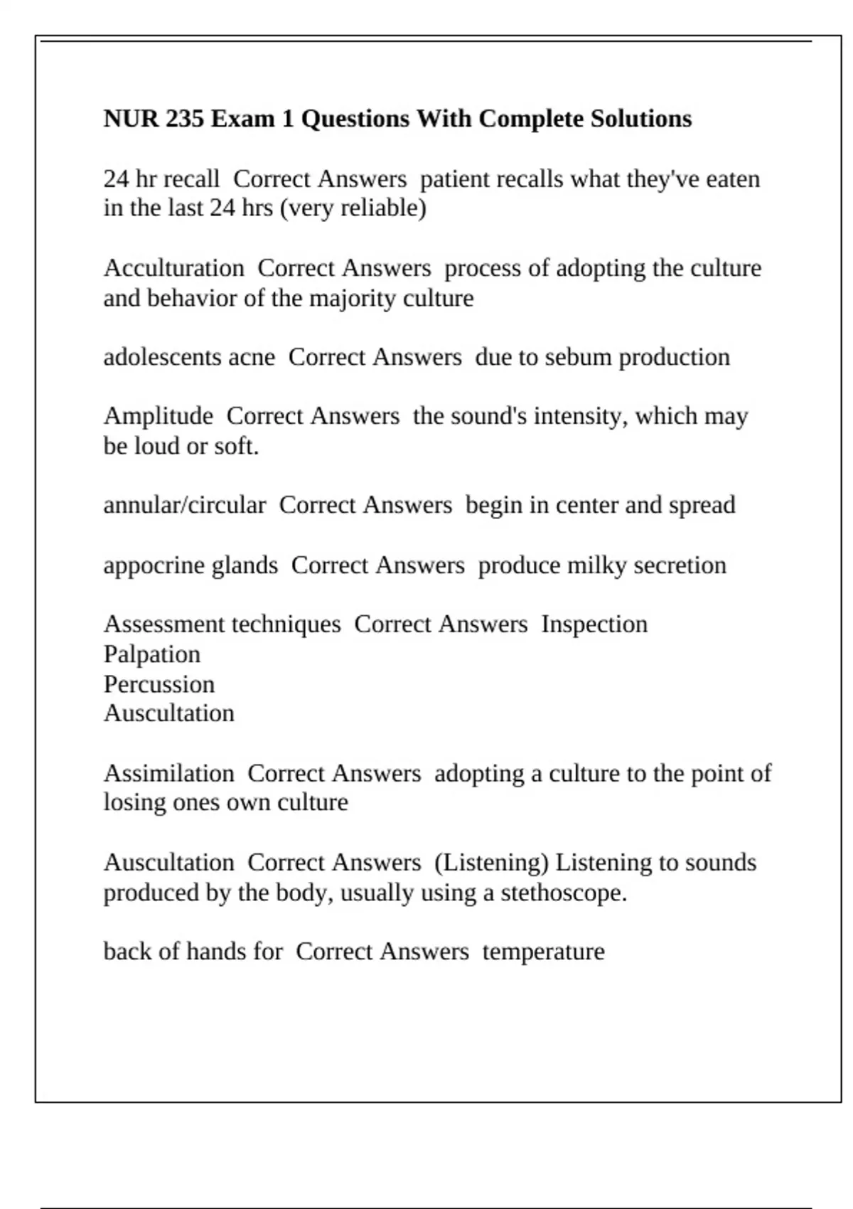 NUR 235 Exam 1 Questions With Complete Solutions