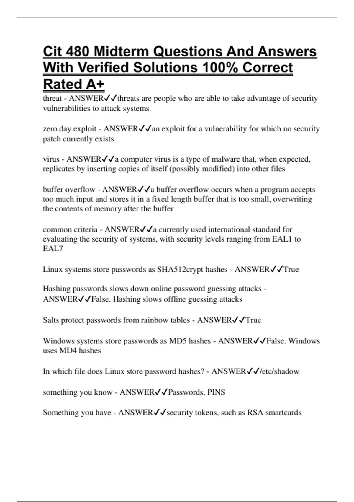 Cit 480 Midterm Questions And Answers With Verified Solutions 100% Correct Rated A+