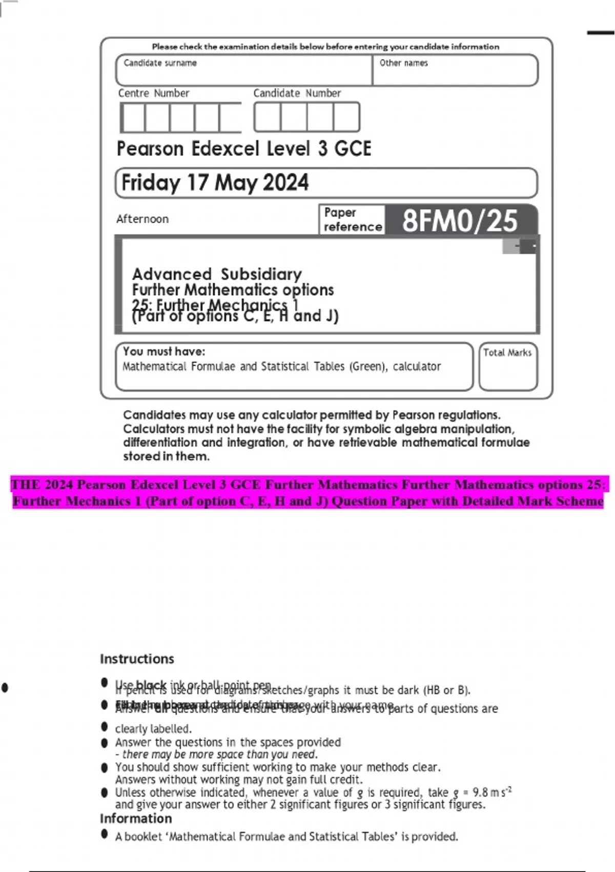 the 2024 pearson edexcel level 3 gce further mathe