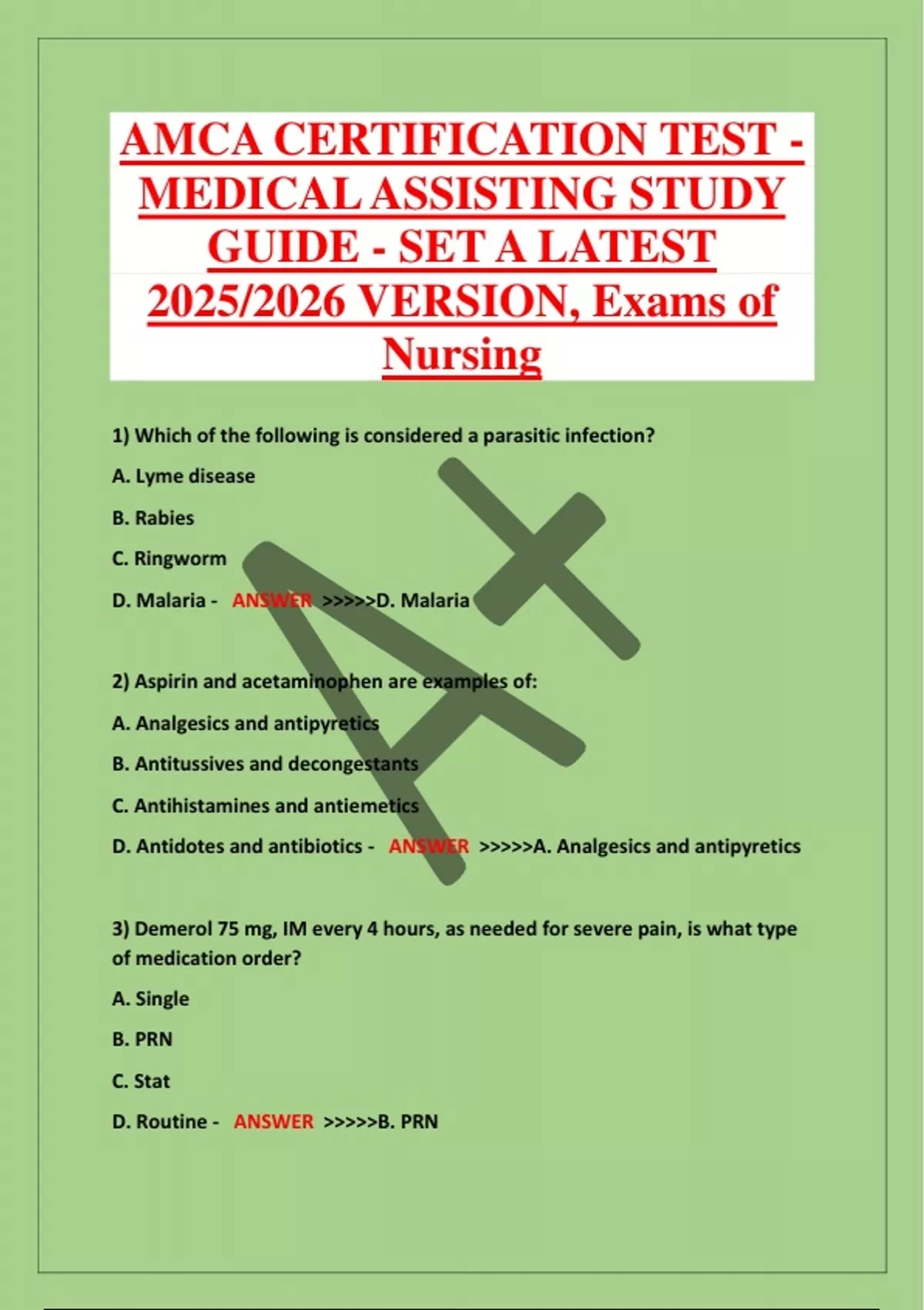 AMCA CERTIFICATION TEST - MEDICAL ASSISTING STUDY GUIDE - SET A LATEST 2025/2026 VERSION, Exams of Nursing