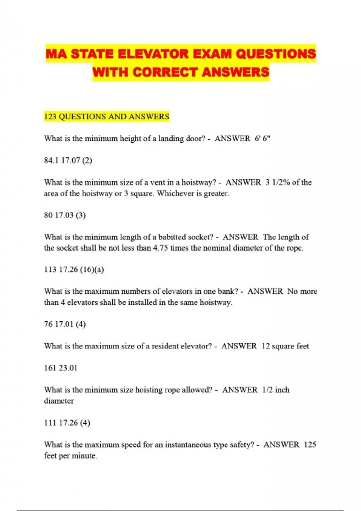 MA STATE ELEVATOR EXAM QUESTIONS WITH CORRECT ANSWERS...