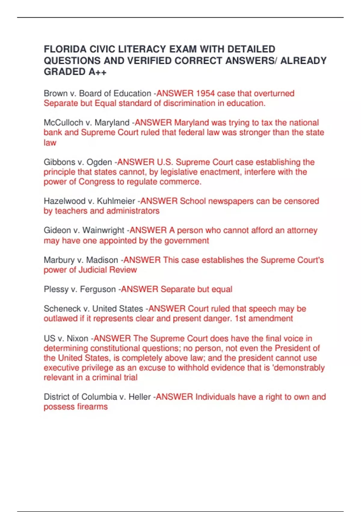 FLORIDA CIVIC LITERACY EXAM WITH DETAILED