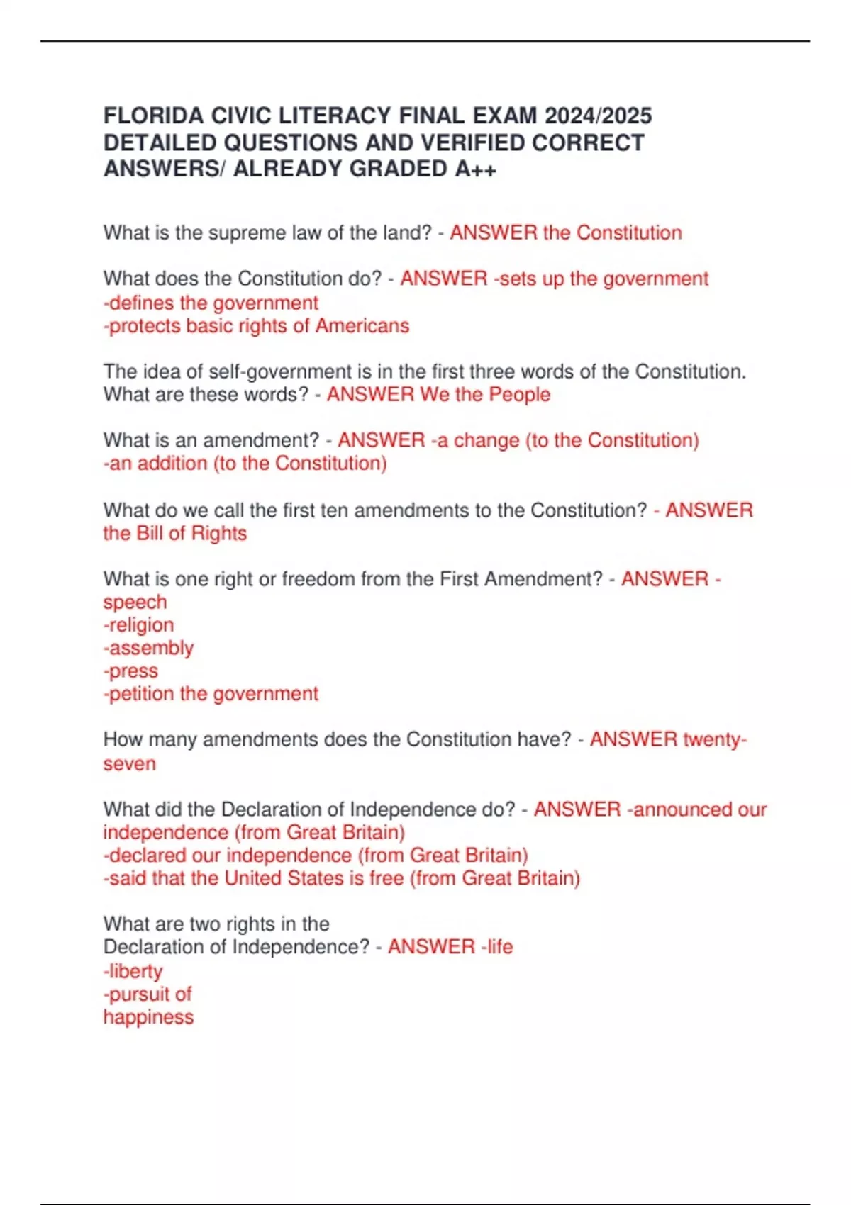 FLORIDA CIVIC LITERACY FINAL EXAM 2024/2025