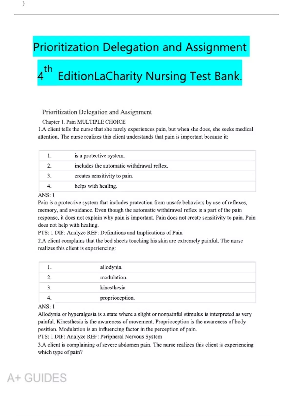 Test Bank Prioritization, Delegation, and Assignment 4th Edition, A+ guide with complete content