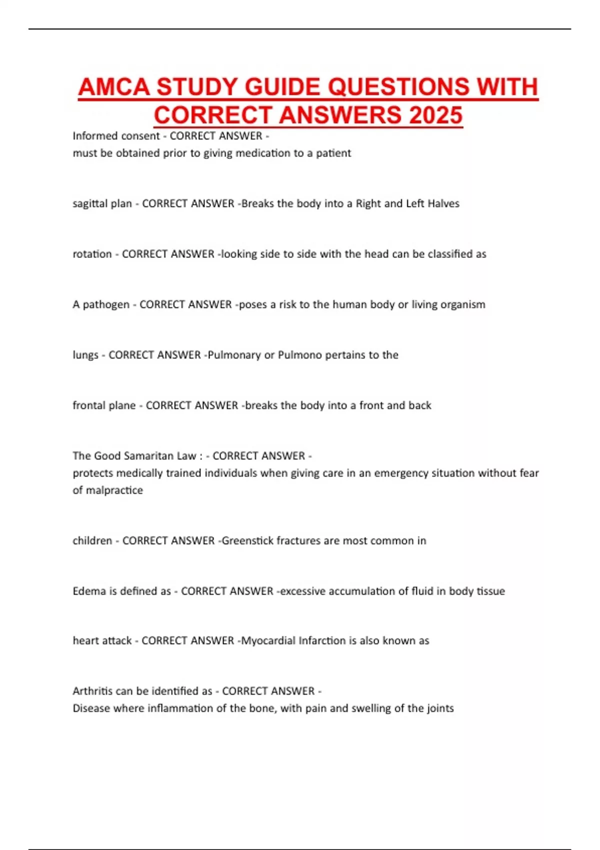 AMCA STUDY GUIDE QUESTIONS WITH CORRECT ANSWERS 2025