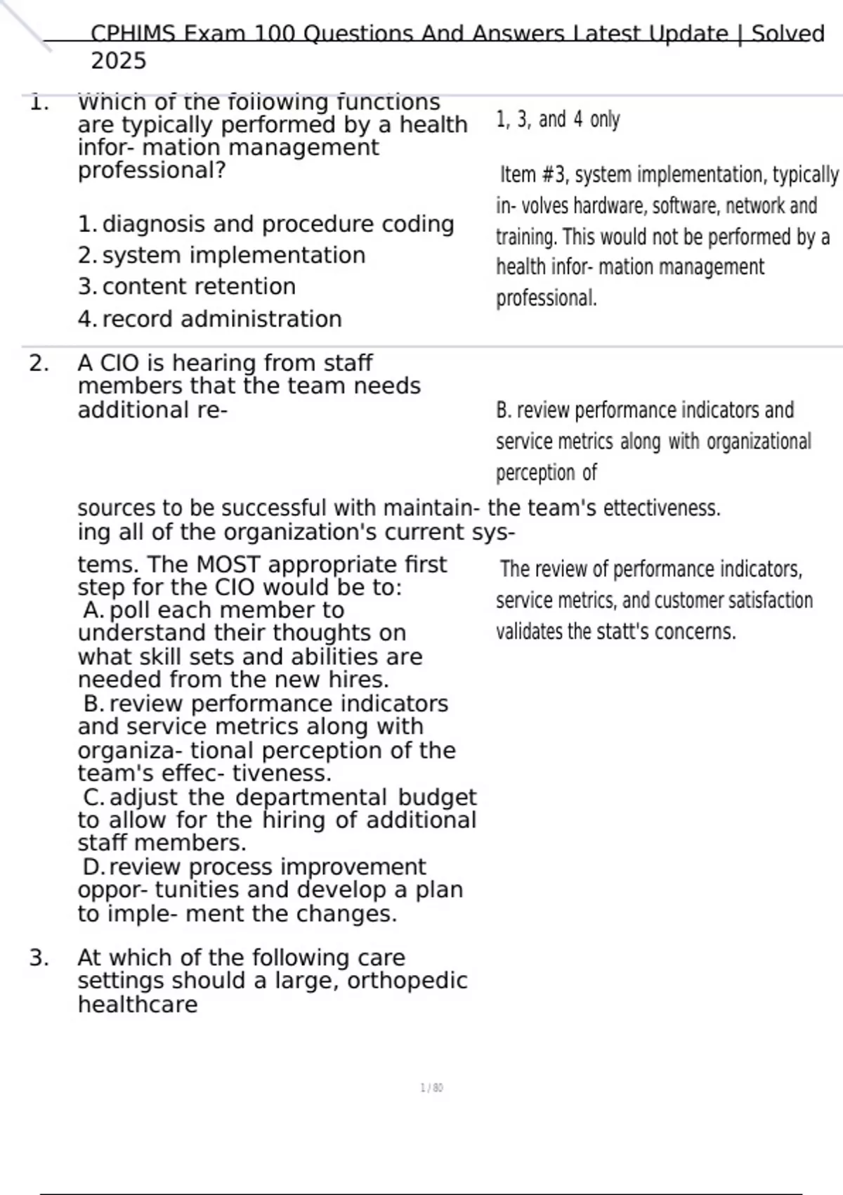 , CPHIMS Exam 100 Questions And Answers Latest Update | Solved