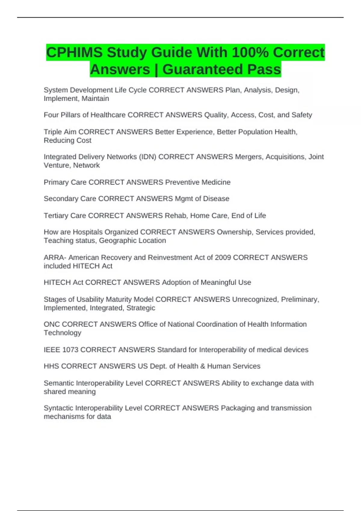 CPHIMS Study Guide With 100% Correct Answers | Guaranteed Pass