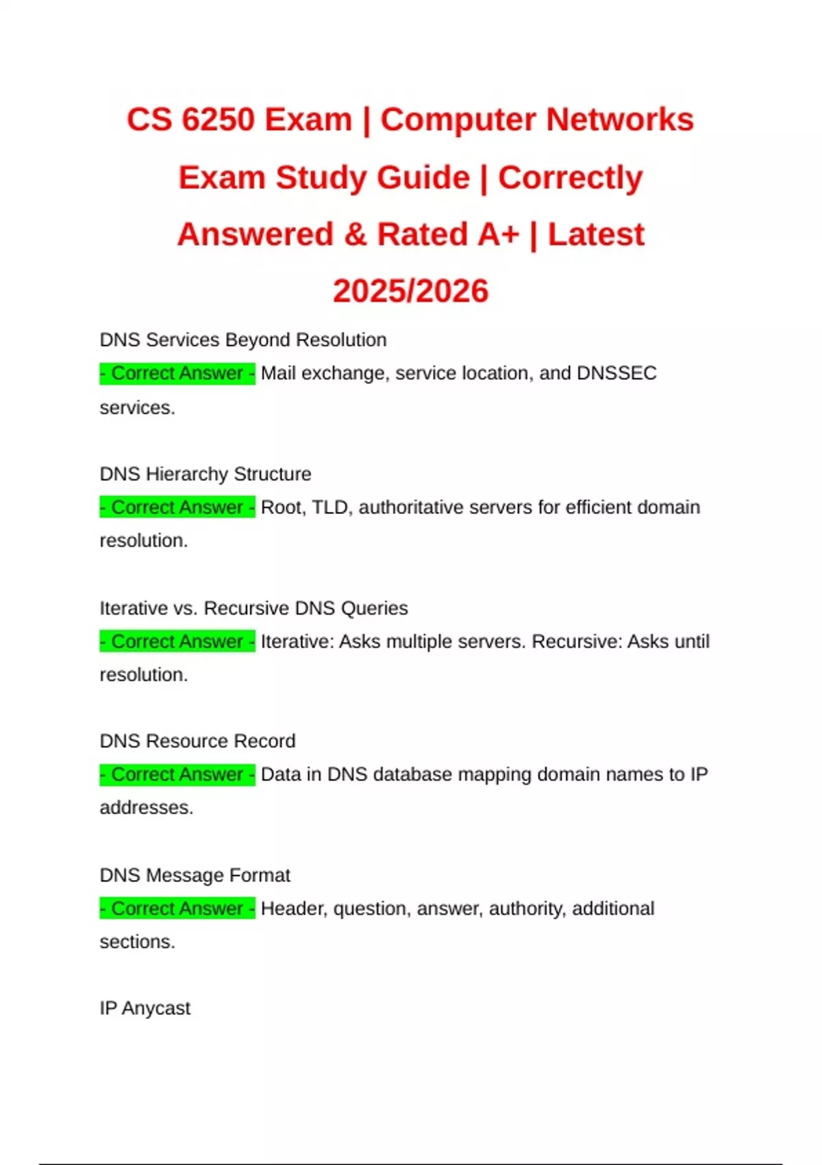 CS 6250 Exam | Computer Networks Exam Study Guide | Correctly Answered & Rated A+ | Latest 2025/2026 CS 6250 Exam | Computer Networks Exam Study Guide | Correctly Answered & Rated A+ | Latest 2025/2026 CS 6250 Exam | Computer Networks Exam Study Guide | Correctly Answered & Rated A+ | Latest 2025/2026