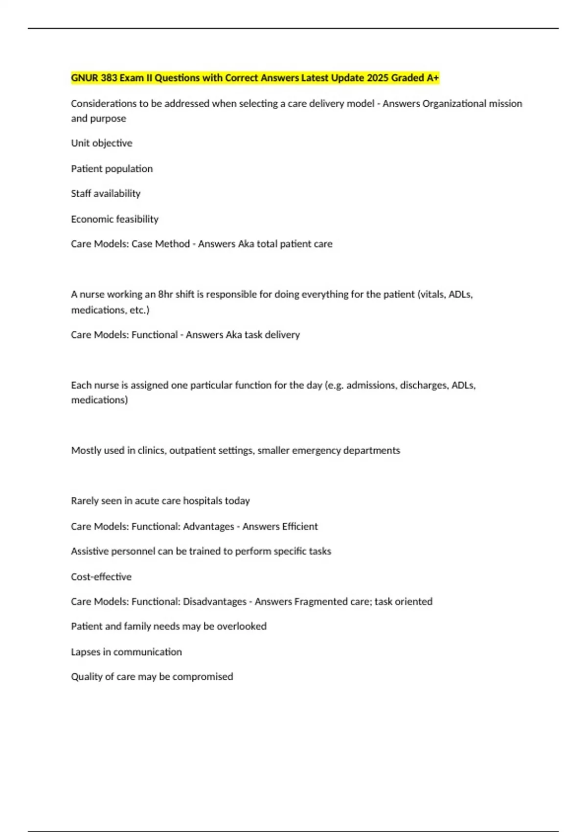 Care Models: Team Nursing: Advantages - Answers Cost effective