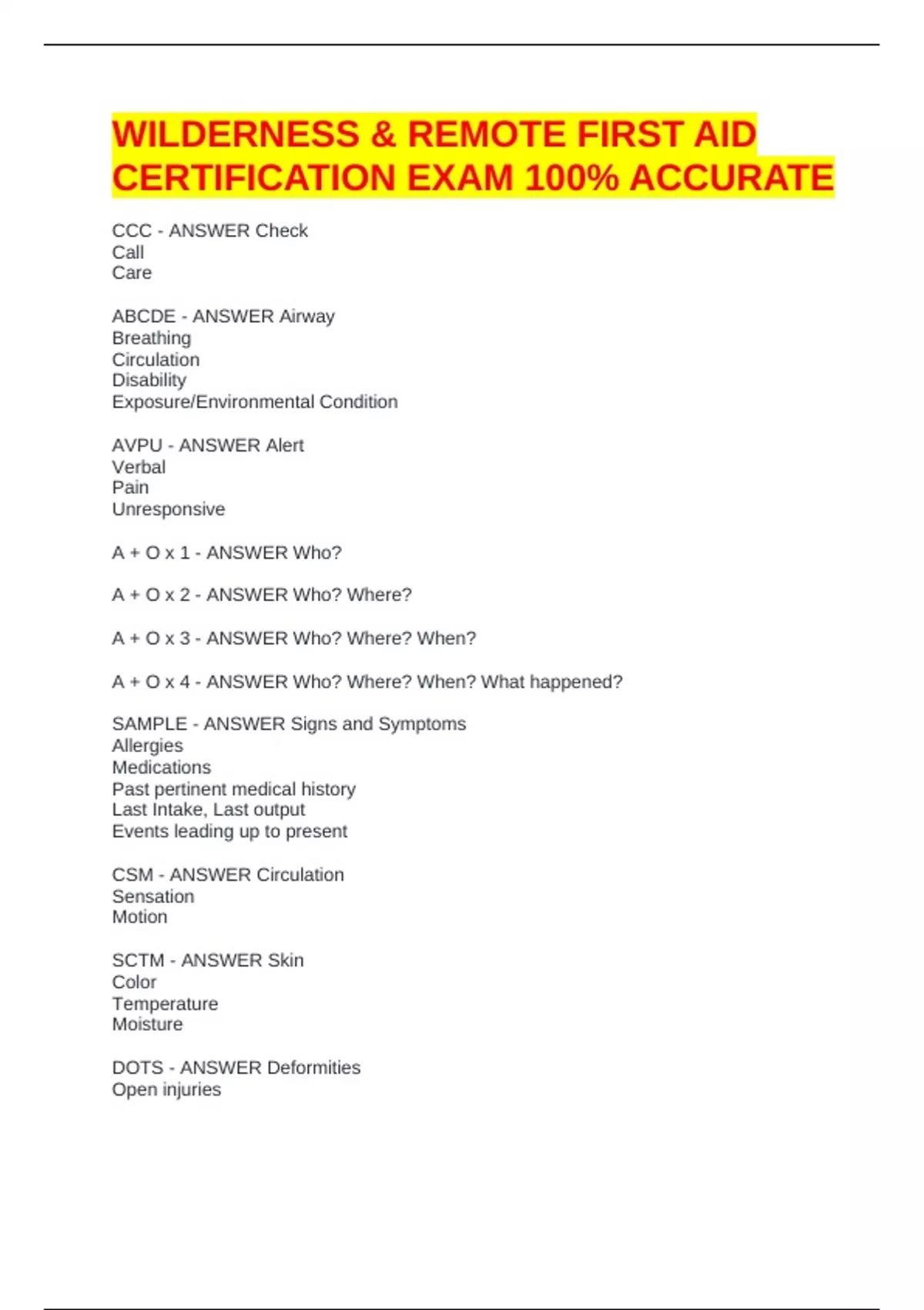 d. How long before help arrives - ANSWER how to use a signal mirror