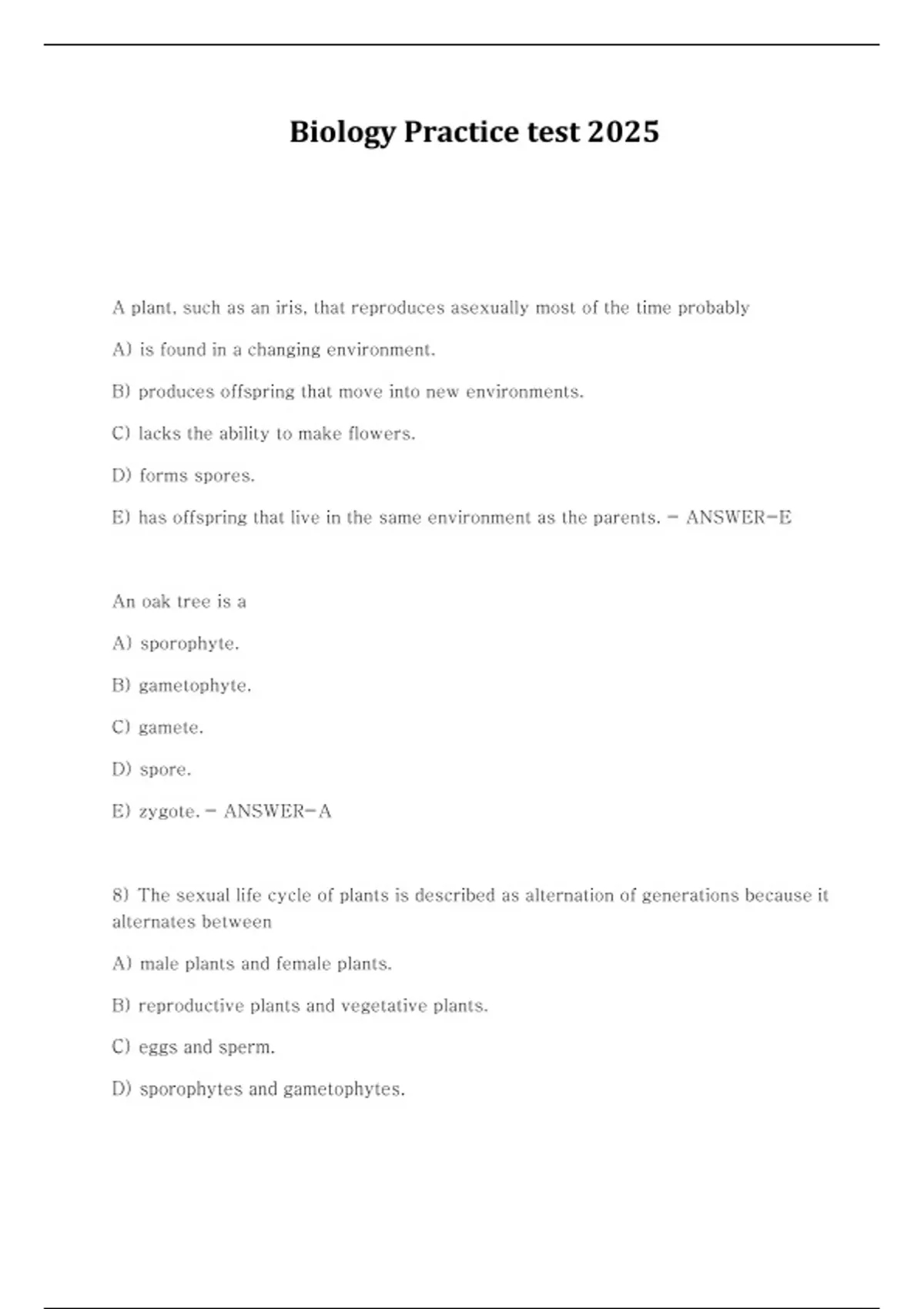 - Biology Practice