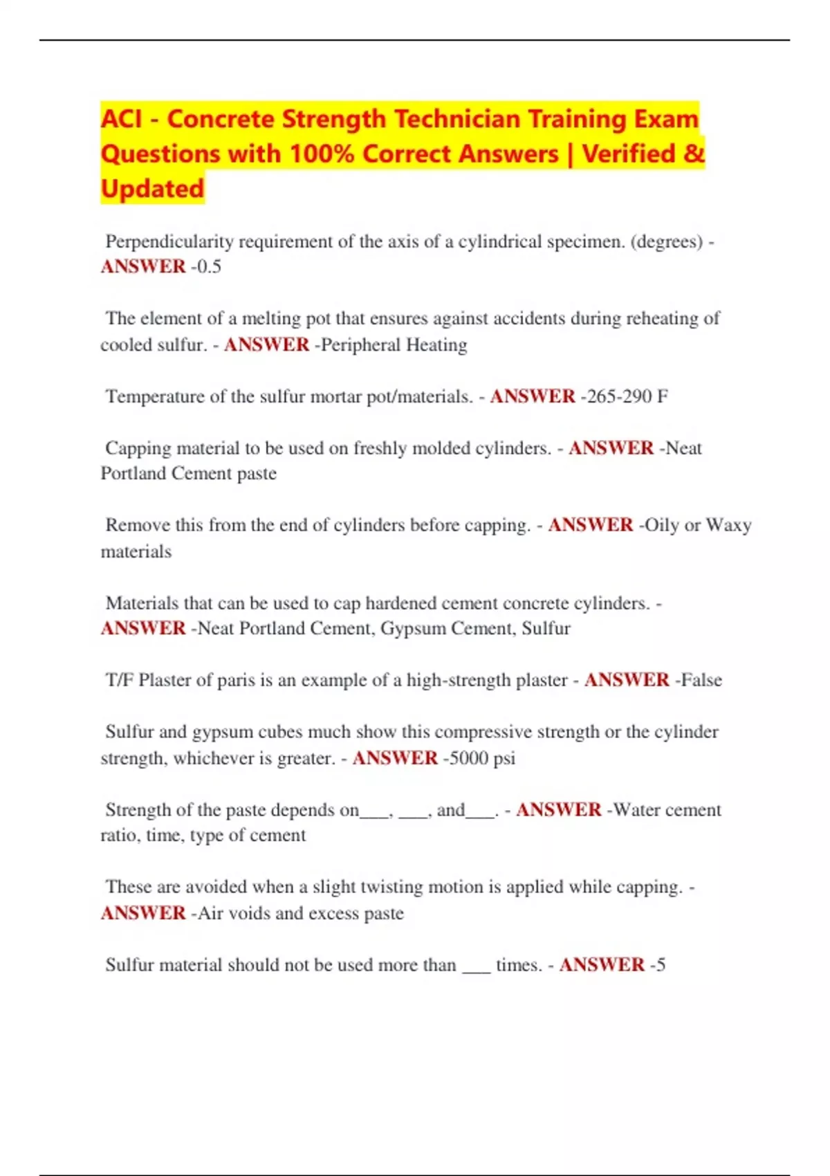 Capping material to be used on freshly molded cylinders. - ANSWER -Neat