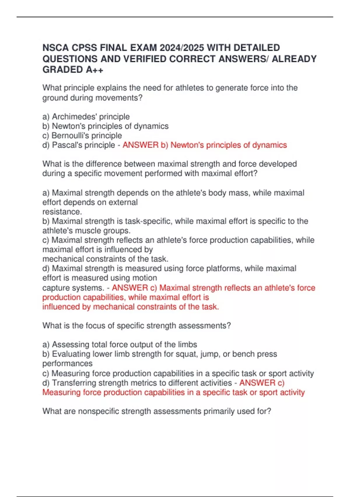 NSCA CPSS FINAL EXAM 2024/2025 WITH DETAILED