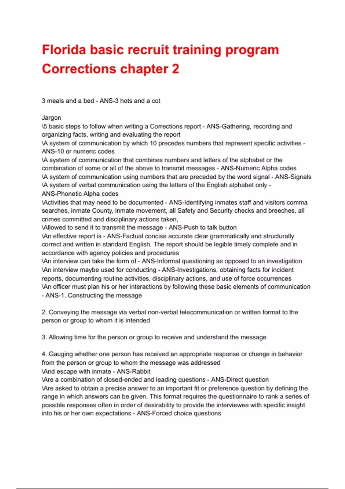 Florida basic recruit training program Corrections chapter 2 Exam 2025/2026 Questions With Completed Solutions.