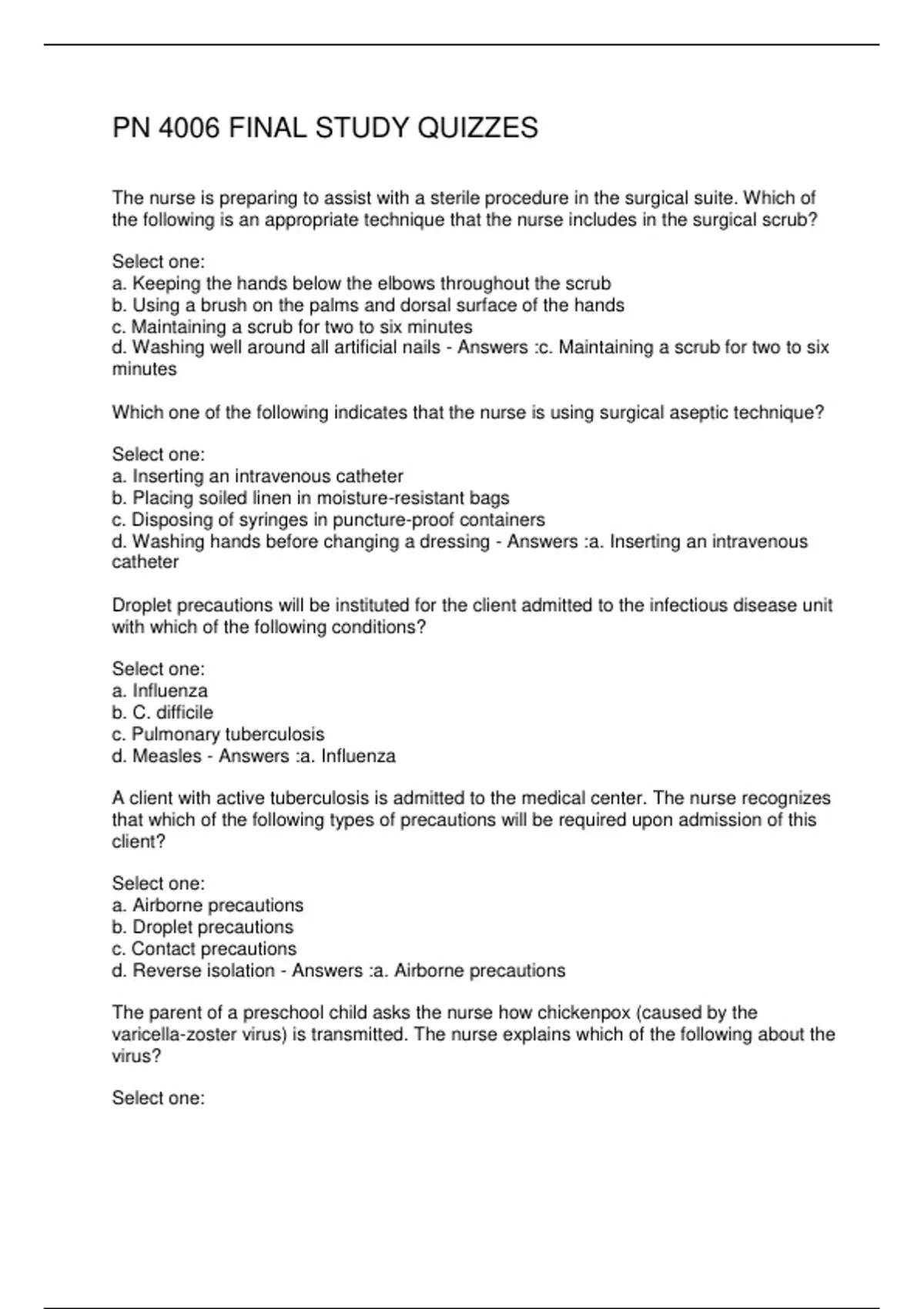 d. Washing hands before changing a dressing - Answers :a. Inserting an intravenous