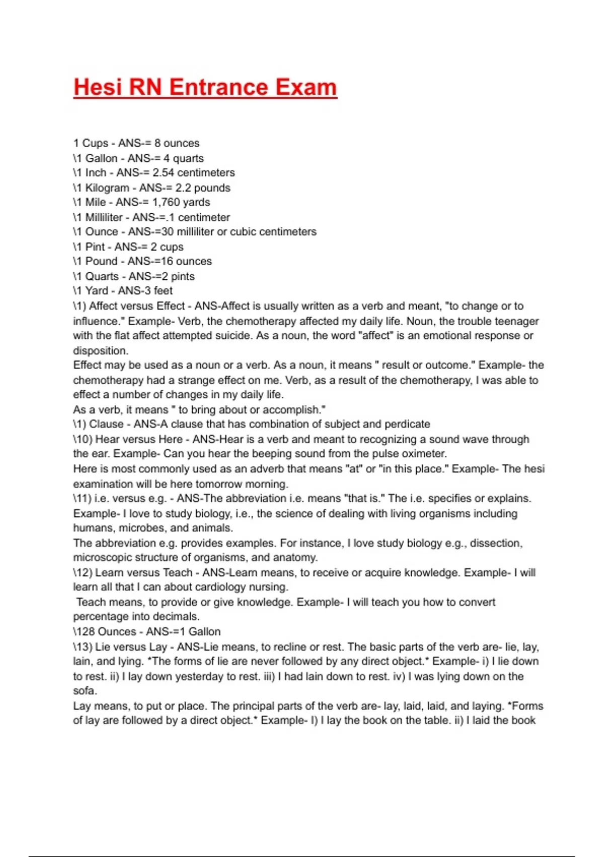 Hesi RN Entrance Exam 2025/2026 Questions With Completed & Verified Solutions.