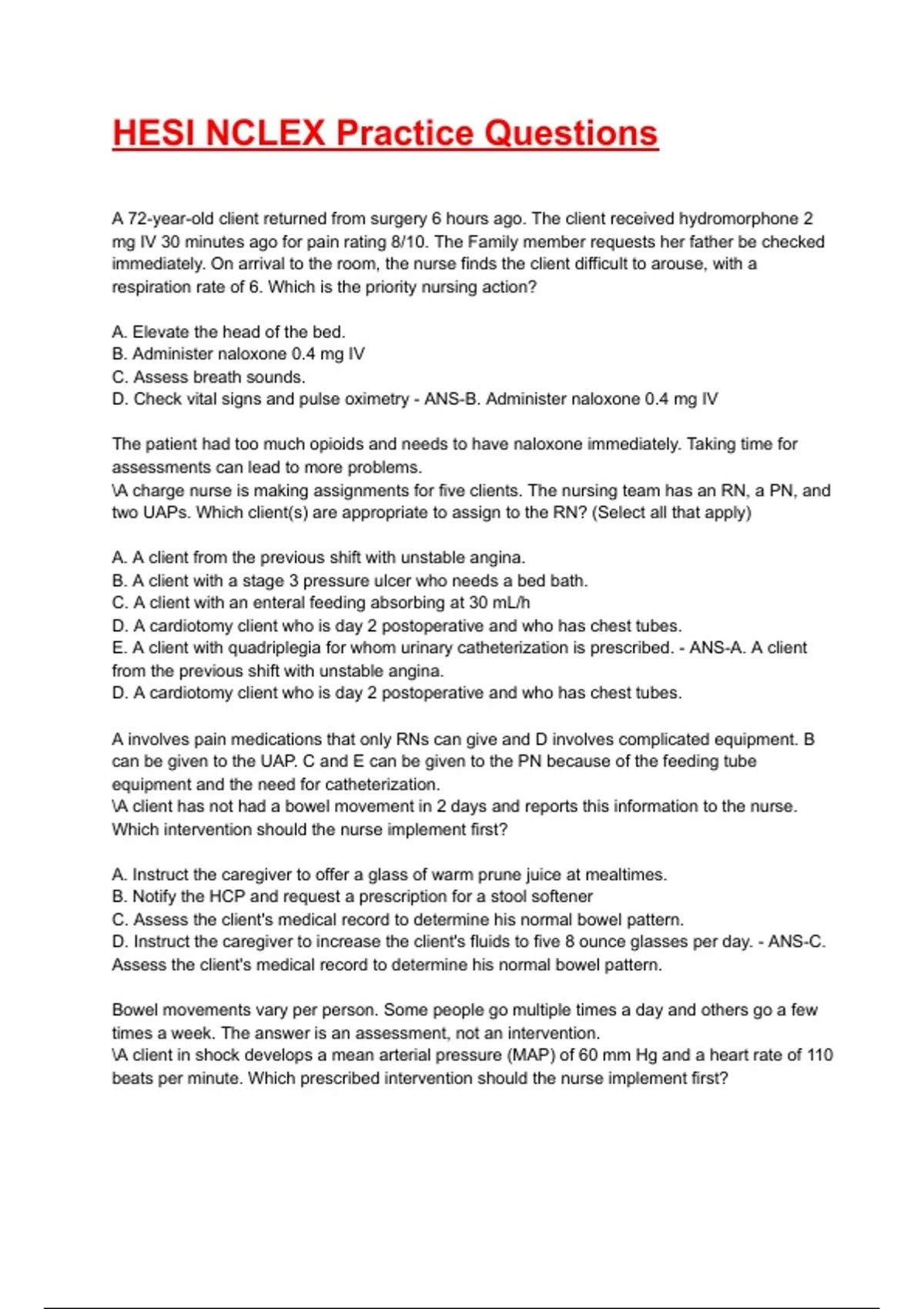 HESI NCLEX Practice Questions