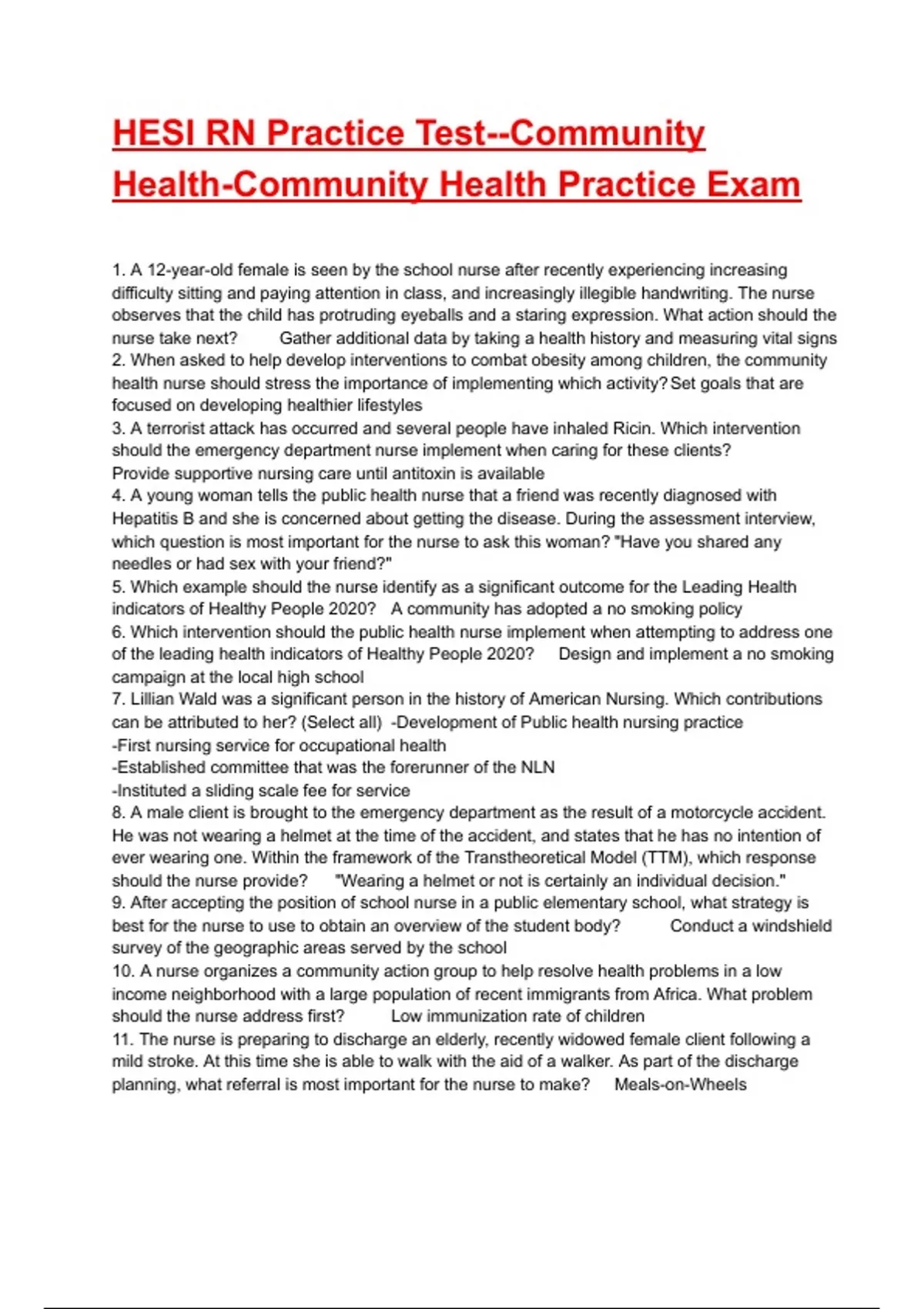 HESI RN Practice Test--Community